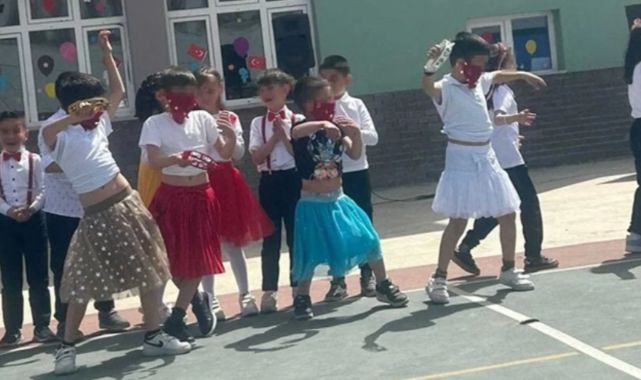 Tokat'ta 23 Nisan Ulusal Egemenlik ve Çocuk Bayramı'nda ilkokulda düzenlenen programın görüntüleri sosyal medyada yayıldı.