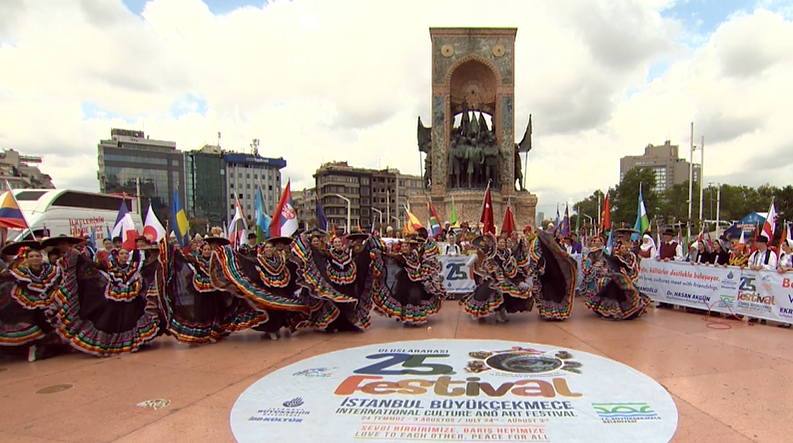 Saygı duruşunun ardından festivale katılan ülkelerin renkli dans gösterileriyle unutulmaz anlar yaşandı. Tüm dünyaya sevgi ve barış mesajlarının verildiği festival, 75 ülkeden 1200 kültür ve sanat elçisinin katılımıyla 3 Ağustos gecesine kadar Büyükçekmece’de devam edecek.