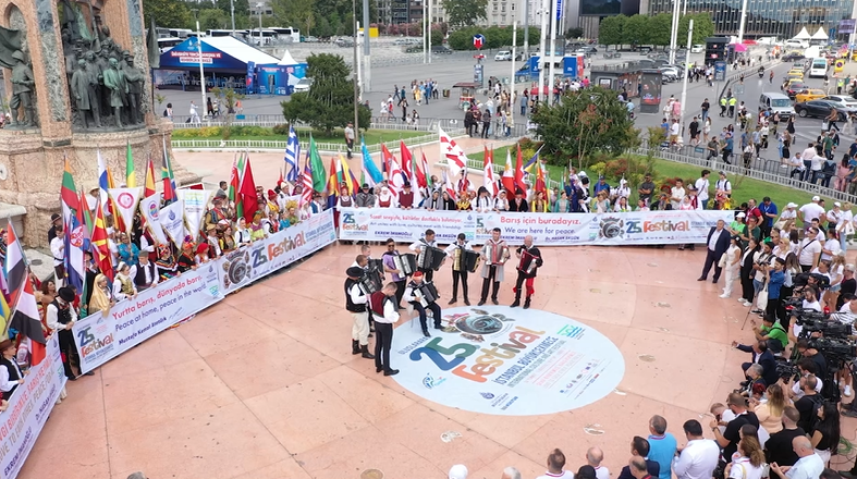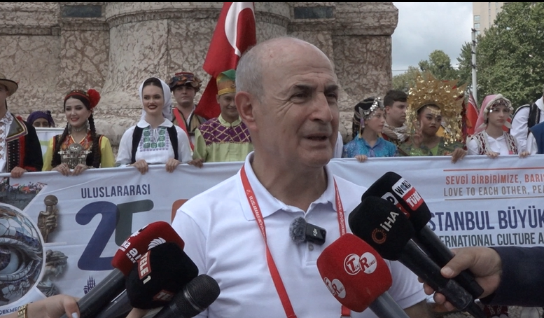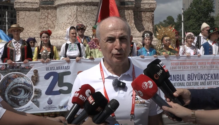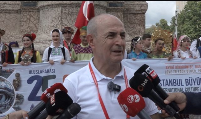 ‘’Bugün burada Taksim Meydanı’nda Uluslararası 25. İstanbul Büyükçekmece Kültür ve Sanat Festivali’nin başladığını İstanbul halkımıza duyurarak, İstanbul halkımızı bu büyük kültür ve sanat şenliğine davet etmek üzere geldik. Bu sene geçen seneye rağmen 25 ülke azaldı. Çünkü geçen sene Cumhuriyetimizin 100’üncü yılı nedeniyle dünyada ilk defa 100 devletin katılımıyla bu festivali yapmıştık.