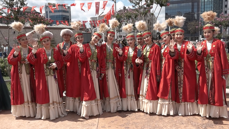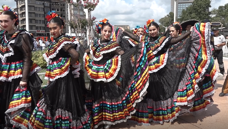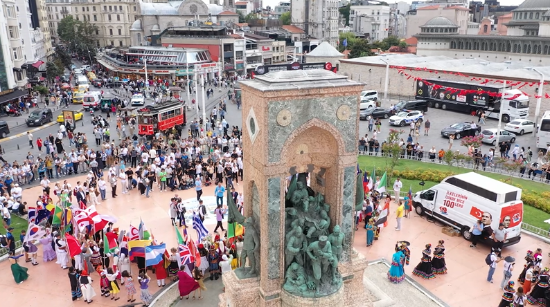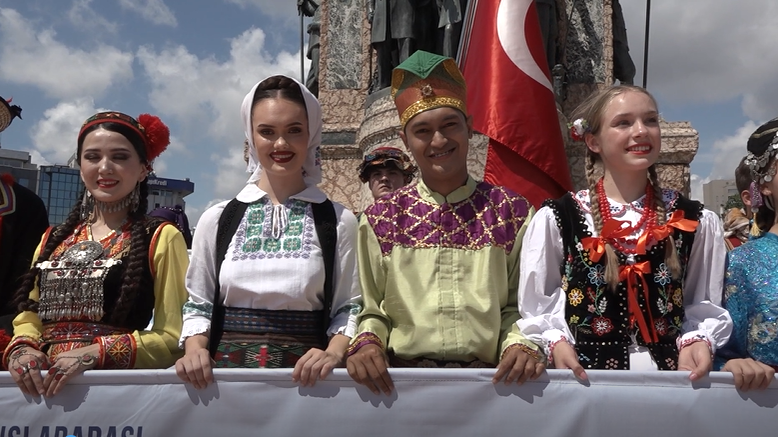 75 ülke temsilcisinin ülke bayraklarıyla katıldıkları çelenk takdim töreninde Meksika, Bulgaristan, Güney Kore ve Kazakistan’dan katılan dans ekipleri renkli ulusal folklorik kostümleri ve geleneksel müzikleri eşliğinde Taksim Meydanı’nda görsel bir şölen yaşattı.