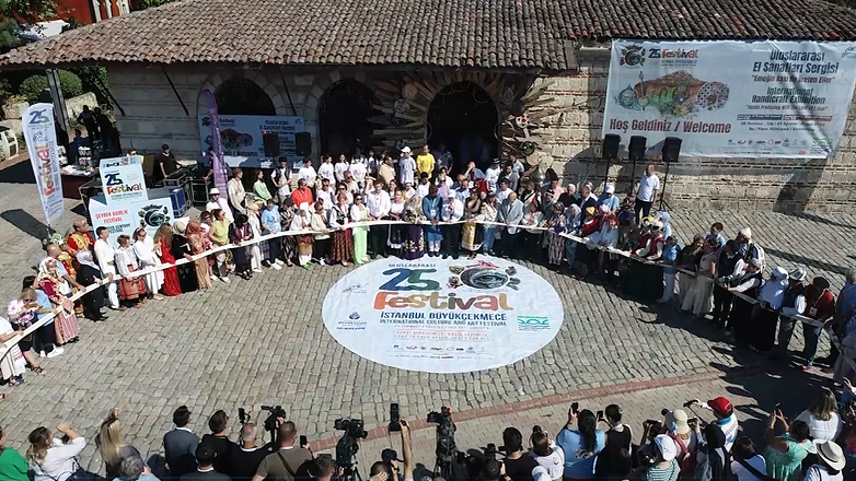 Burası Uluslararası 25. İstanbul Büyükçekmece Kültür ve Sanat Festivali’nin el sanatları bölümü. El sanatları Atölyesi, yaklaşık 40, 50 civarında devlet katılıyor. Festivale katılım bu sene 75 ülkeyle sınırlandırılmıştı ama 80’i geçti. Önemli bir kültür zenginliğini paylaşıyoruz. Herkesi Büyükçekmece’ye festival etkinliklerine, kültür zenginliklerini izlemeye davet ediyorum. Herkesi 29 Temmuz Akşamı Büyükçekmece Mimarsinan Köprüsü’nün üzerine davet ediyorum. Saat tam 20.00’den itibaren Uluslararası 25. İstanbul Büyükçekmece Kültür ve Sanat Festivali’nin resmi açılış töreni yapılacaktır. Diğer zenginlikleri de aynı zamanda göreceksiniz. ‘’