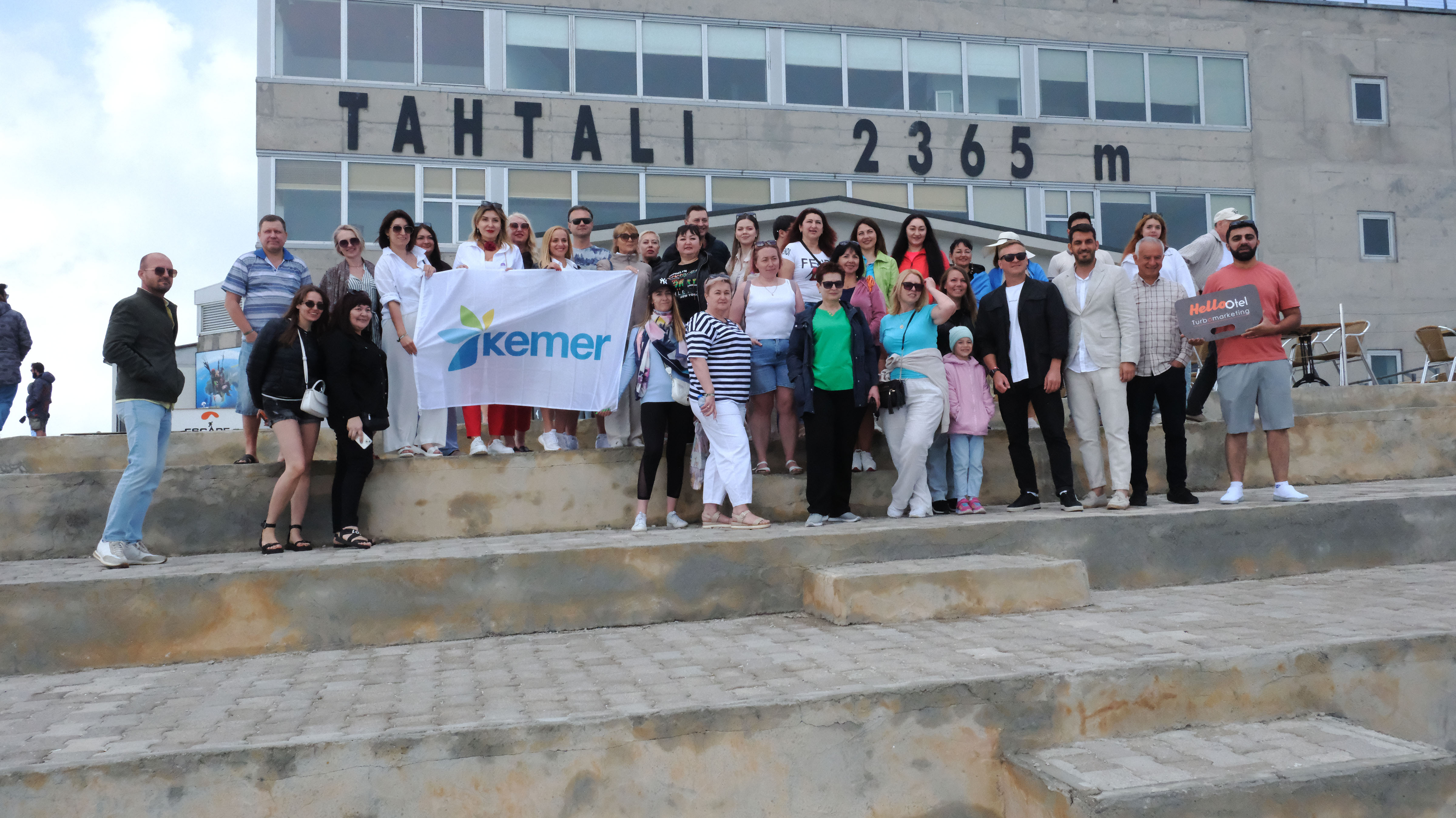 Kemer Belediyesi ile Hello Otel arasında yapılan tanıtım anlaşması kapsamında 400 acente yetkilisi, Kemer’i gezerek bilgi aldı. Kaldıkları otellerden araçlarla alınan acentecilerin ilk durağı 2365 metre yükseklikteki Tahtalı Dağı’nın zirvesi oldu. Yaklaşık 12 dakikalık teleferik yolculuğunun ardından zirveye ulaşan acentecilere, kemer belediyesi Meclis Üyesi Cansın Efir eşlik etti. Kemer’in tanıtımına katkı sağlamak ve turistleri Kemer’e çekebilmek amacıyla yapılan program kapsamında zirvede manzaranın tadını çıkaran acenteciler, bol bol fotoğraf çektirerek, Olympos Teleferik Satış ve Pazarlama Müdürü Haydar Culfa’dan teleferik ile ilgili bilgi aldı. Kemer Belediyesi Kültür Evi’ne ziyaret Acente yetkilileri, teleferik yolculuğunun ardından Kemer Belediye Başkanı Necati Topaloğlu’nun girişimleriyle Kemer turizmine kazandırılan Kemer Belediyesi Kültür Evi’ni ziyaret etti. Kültür Evi’ndeki tarihi belge, fotoğraf, objeleri ve diğer önemli eşyaları inceleyen acenteciler, Kemer’in ünlü caddesi Liman Caddesi’nde de yürüyüş yaptı. Acentecilere kokteyl Acenteciler, Liman Caddesi’nden sonra Ay Işığı Koyu’ndaki Qualista Beach’te düzenlenen kokteyle katıldı.Qualista Beach sahibi İsmail Kıyar’ın ev sahipliğinde yapılan kokteyle, Kemer Belediye Başkanı Necati Topaloğlu, Kemer Belediyesi Meclis Üyesi Cansın Efir, Hello Otel Sahibi Sabir Mizam, Kemer Yöresi Tanıtım Vakfı (KETAV) Başkanı Volkan Yorulmaz ve yönetim kurulu üyeleri, Kemer Turistik Otelciler ve İşletmeciler Birliği (KETOB) Başkanı Dinçer Sarıkaya ve yönetim kurulu üyeleri, Kemer Turizmci ve İş İnsanları Derneği (KEMİAD) Başkanı Rıza Sönmez ile yönetim kurulu üyeleri ve acenteciler katıldı. Başkan Topaloğlu’na büyük ilgi gösteren acenteciler, Başkan Topaloğlu ile fotoğraf çektirmek için adeta sıraya girdi. Başkan Topaloğlu, program sonrası yaptığı açıklamada, artık Kemer’in geçim kaynağının turizm olduğunu seçimlerden önce de ifade ettiğini söyledi. Kemer Belediyesi Meclis Üyesi Cansın Efir ile turizme yönelik çalışmalara hızlı başladıklarını anlatan Başkan Topaloğlu, “Hello Otel ile bir protokol yaptık. Şu anda 400 acenteci Kemer’e gelerek bizim misafirimiz oldu. Kendilerini bugün Tahtalı Dağı’na, Kemer Belediyesi Kültür Evi’ne ve Liman Caddesi’nden Qualista Beach’e getirdik.Acenteciler Kemer’i yakından görerek insanlarının misafirperverliğini görüyor. Bunlar bizim için büyük önem taşıyor. En iyi tanıtım aslında budur. Biz çok mutluyuz. Bu sene turizm daha iyi olacak. Tanıtım faaliyetlerini her sene artırarak devam edeceğiz. Emeği geçenlere teşekkür ediyorum.” dedi.