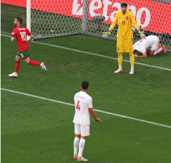 A Milli Futbol Takımımız, 2024 Avrupa Şampiyonası'nda F Grubu'ndaki ikinci maçında güçlü rakibi Portekiz'e 3-0 mağlup oldu. Maçın gollerini Bernardo Silva, Samet Akaydin (kendi kalesine) ve Bruno Fernandes kaydetti.Maç Özeti