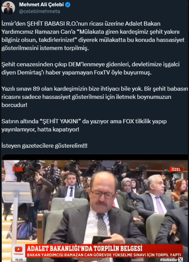 Adalet Bakan Yardımcısı Ramazan Can'la ilgili bir konferans sırasında görüntülenen cep telefonu üzerinden ''torpil'' iddiası ortaya atıldı.