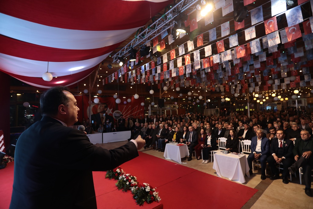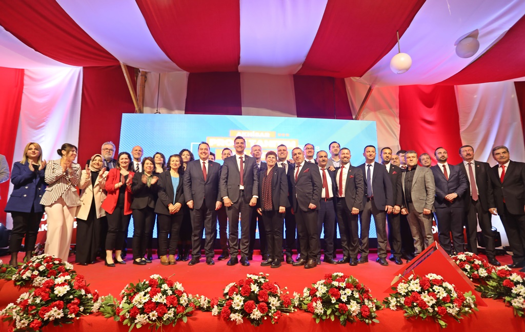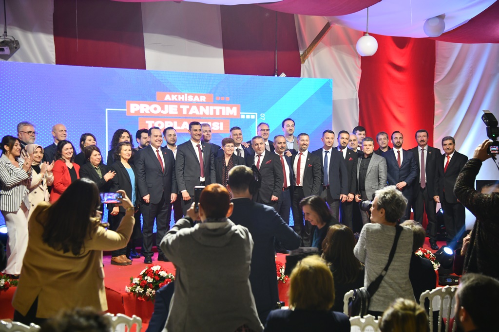 MERKEZ ÇARŞI'NIN DÜZENLENMESİ PROJESİAkhisar Belediye Başkan Adayı Besim Dutlulu tarafından sunulan projeler hem salondaki kalabalıktan hem de canlı yayından takip eden Akhisar halkı tarafından büyük ilgi gördü. “TÜM GÜCÜMÜZLE DAHA ÇOK ÇALIŞACAĞIZ”Akhisar’a yeniden baharı getirmek için kollarını sıvadıklarını söyleyen Başkan Besim Dutlulu, çok çalışacaklarının sözünü vererek şu şekilde konuştu; “Akhisar için hedeflerimizi, projelerimizi ve vizyonumuzu paylaştığımız proje tanıtım toplantımızı yoğun bir katılımla coşkulu bir şekilde gerçekleştirdik. Bugün burada olan ve canlı yayında bizleri seyreden tüm halkımıza teşekkür ediyorum. İnşallah 31 Mart’ta halkımızla birlikte omuz omuza verip, Akhisar’ımızı daha huzurlu, daha yaşanabilir, daha mutlu bir kent yapmak için tüm gücümüzle çalışacağız.” “BESİM BAŞKANIN HİZMETLERİNİ ÖRNEK OLARAK ANLATIYORUZ”Başkan Dutlulu’nun konuşmasının ardından söz alan Manisa Büyükşehir Belediye Başkan Adayı Ferdi Zeyrek, “23 gün kaldı. 23 gün sonra Besim Başkanımız yeniden Akhisar Belediye Başkanı olacak. Hem de Ferdi kardeşiniz Manisa Büyükşehir Belediye Başkanı olacak. Besim başkanın hayata geçirdiği güzel işleri Manisa’nın 17 ilçesine yaymak benim boynumun borcu olsun. Bu projeler benim Akhisar halkına sözümdür. Besim başkanın hayata geçirdikleri ile gurur duyuyor her yerde örnek olarak anlatıyoruz. Hiç merak etmeyin; her şey güzel olacak” dedi. Konuşmaların ardından Cumhuriyet Halk Partisi ailesine katılan yaklaşık 400 Akhisarlı vatandaşa rozetleri takıldı. Toplu fotoğraf çekimlerinin ardından toplantı sona erdi.