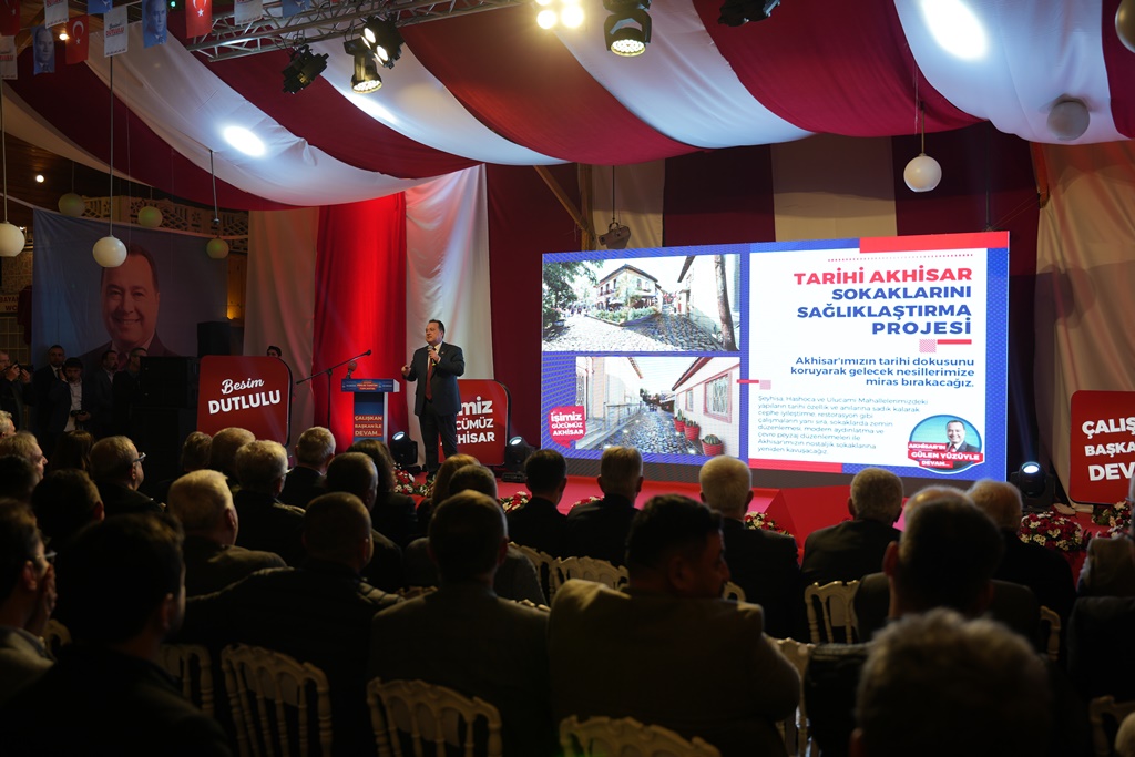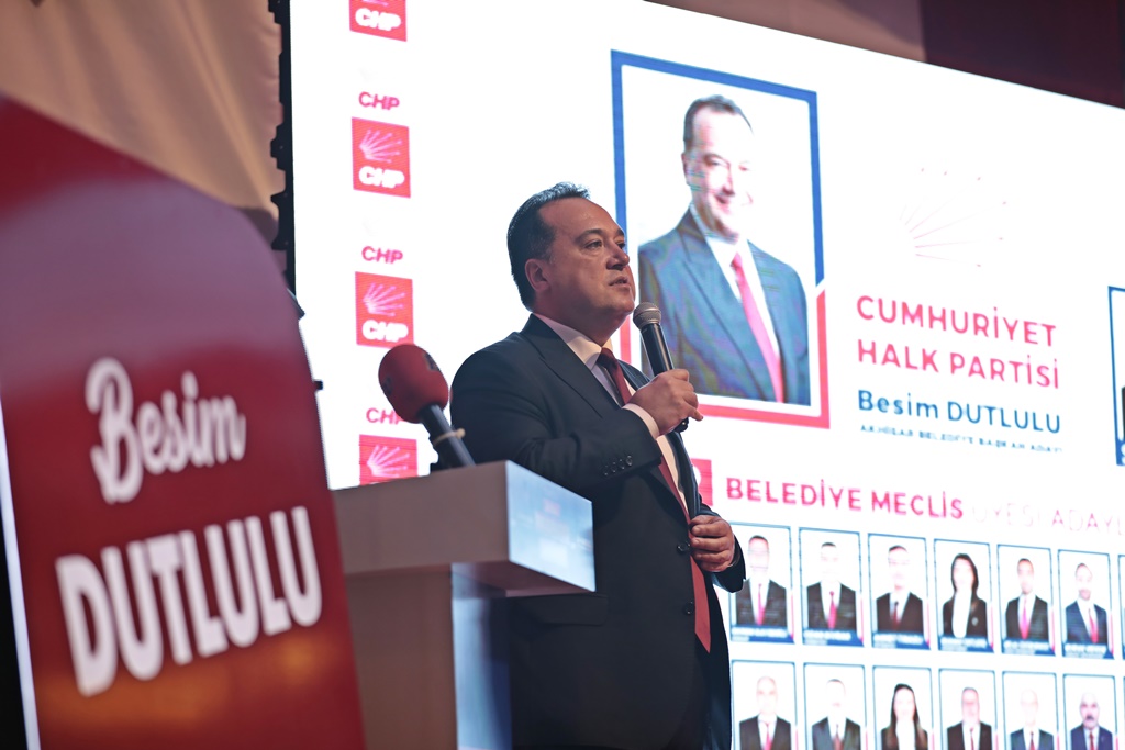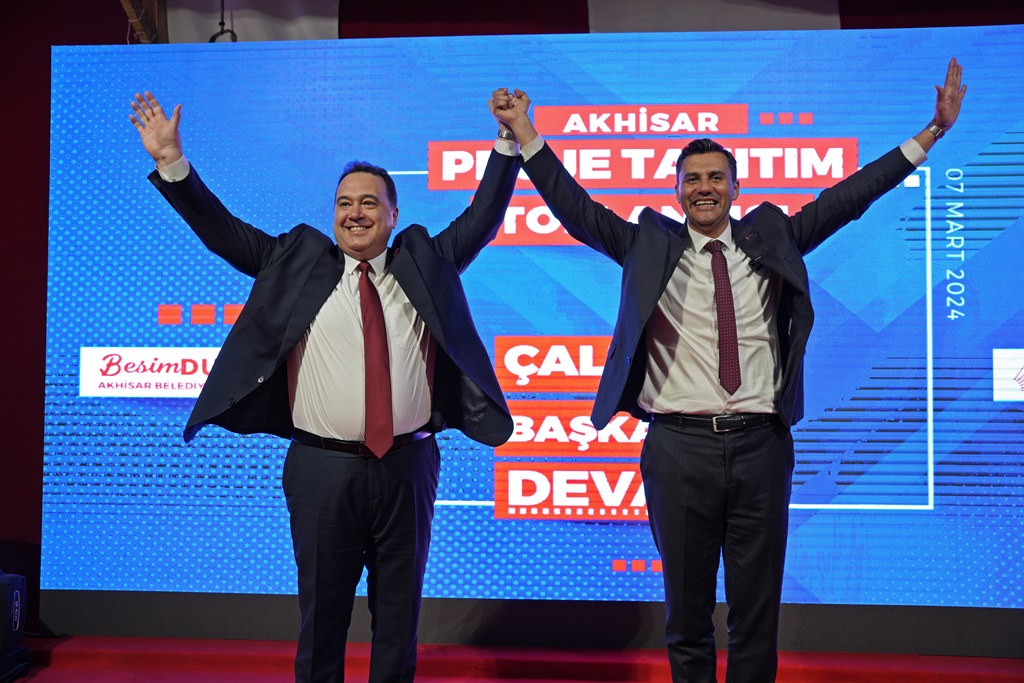 Akhisar Belediye Başkanı ve Başkan Adayı Besim Dutlulu, salonları dolduran coşkulu kalabalığın desteğiyle yeni dönem projelerini anlattı; Dutlulu, “Akhisar halkımızın desteğiyle inşallah 31 Mart akşamı zaferi de böyle coşkuyla kutlayacağız” dedi