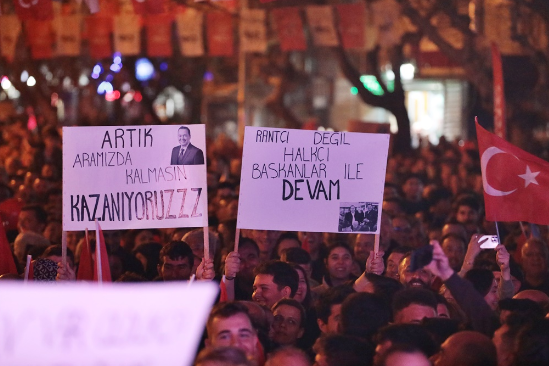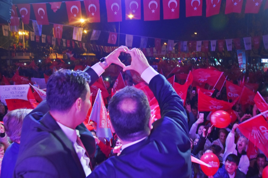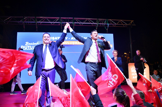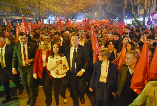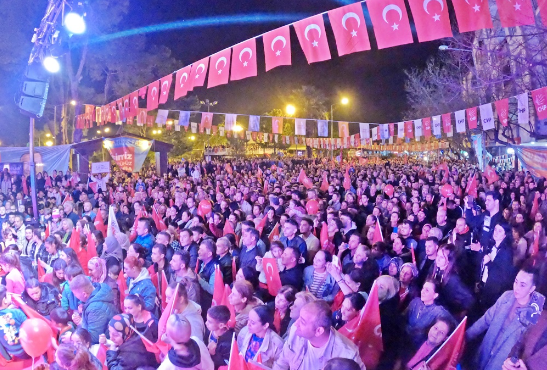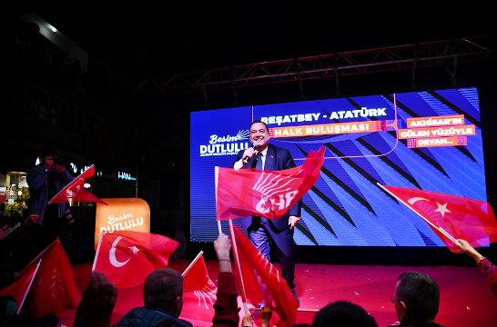 Akhisar Belediye Başkanı ve Adayı Besim Dutlulu, Atatürk (Umut) Parkı önünde gerçekleştirdiği mitinge katılan yaklaşık 7500 kişi hep bir ağızdan ‘Besim Dutlulu ile hizmetlere devam’ dedi.Akhisar tarihinin en kalabalık mitinglerinden birine imza atan Başkan Besim Dutlulu, Reşatbey ve Atatürk Mahallesi halk buluşmasına Manisa Büyükşehir Belediye Başkan Adayı Ferdi Zeyrek ile çıktı.Buluşmada Manisa Milletvekili A. Vehbi Bakırlıoğlu, Cumhuriyet Halk Partisi Akhisar İlçe Başkanı Hayriye Hacet, meclis üyesi adayları ve binlerce Türkiye ve Atatürk sevdalısı vatandaş katıldı. Miting öncesi Pazar Pazarı önünde toplanan binlerce kişi, ellerinde Türk bayrakları ile hep birlikte miting alanına yürüdü. ‘Mustafa Kemal’in Askerleriyiz’, ‘Akhisar’ın Gururu Besim Dutlulu’, ‘Manisa’ya Gerek Ferdi Zeyrek’ sloganları ile başkan adaylarına destek veren Akhisarlılar, meydanlara sığmadı. “AKHİSAR, ARTIK MANİSA BÜYÜKŞEHİRDEN DE HAKKINI ALACAK”Cumhuriyet Halk Partisi Akhisar İlçe Başkanı Hayriye Hacet, kadın ve gençlik kolları başkanlarının yanı sıra parti yönetimi ile birlikte sahneye çıkarak kalabalığı selamladı. Parti yönetiminde Reşatbey ve Atatürk Mahallesi sakinlerinin çoğunlukta olduğuna dikkat çeken Hacet, “Her biri içinizden biri olan, sizin çocuklarınızla birlikte yönetiyoruz partimizi.Besim Başkanımıza olan sevgiyi ve inancı sahada hepimiz görüyoruz. Bu seçimi kazanacağız. İnşallah desteklerinizle Manisa’da da Ferdi Zeyrek’i başkan olarak seçeceğiz ve Akhisar, artık Manisa Büyükşehirden hakkını alacak” dedi.AKHİSAR HALKI BESİM DUTLULU’YU BAĞRINA BASTIAK Parti’nin işçiyi, emekliyi, çocukları hiç düşünmediğini, açlığa ve sefalete terk ettiğini ifade eden Milletvekili Ahmet Vehbi Bakırlıoğlu, Akhisar Belediyesi’nin ihtiyaç sahipleri için yaptığı yardımları eleştiren AK Partililere karşı sert konuştu.15 yıl boyunca Akhisar halkına sırtını dönen, kapalı kapılar arkasında gizli işlerle belediyeyi yöneten AKP anlayışını eleştiren Bakırlıoğlu, 31 Mart akşamı tüm Türkiye’nin Manisa’da yaşanacak zaferleri konuşacağını söyledi.Bakırlıoğlu, şöyle konuştu;