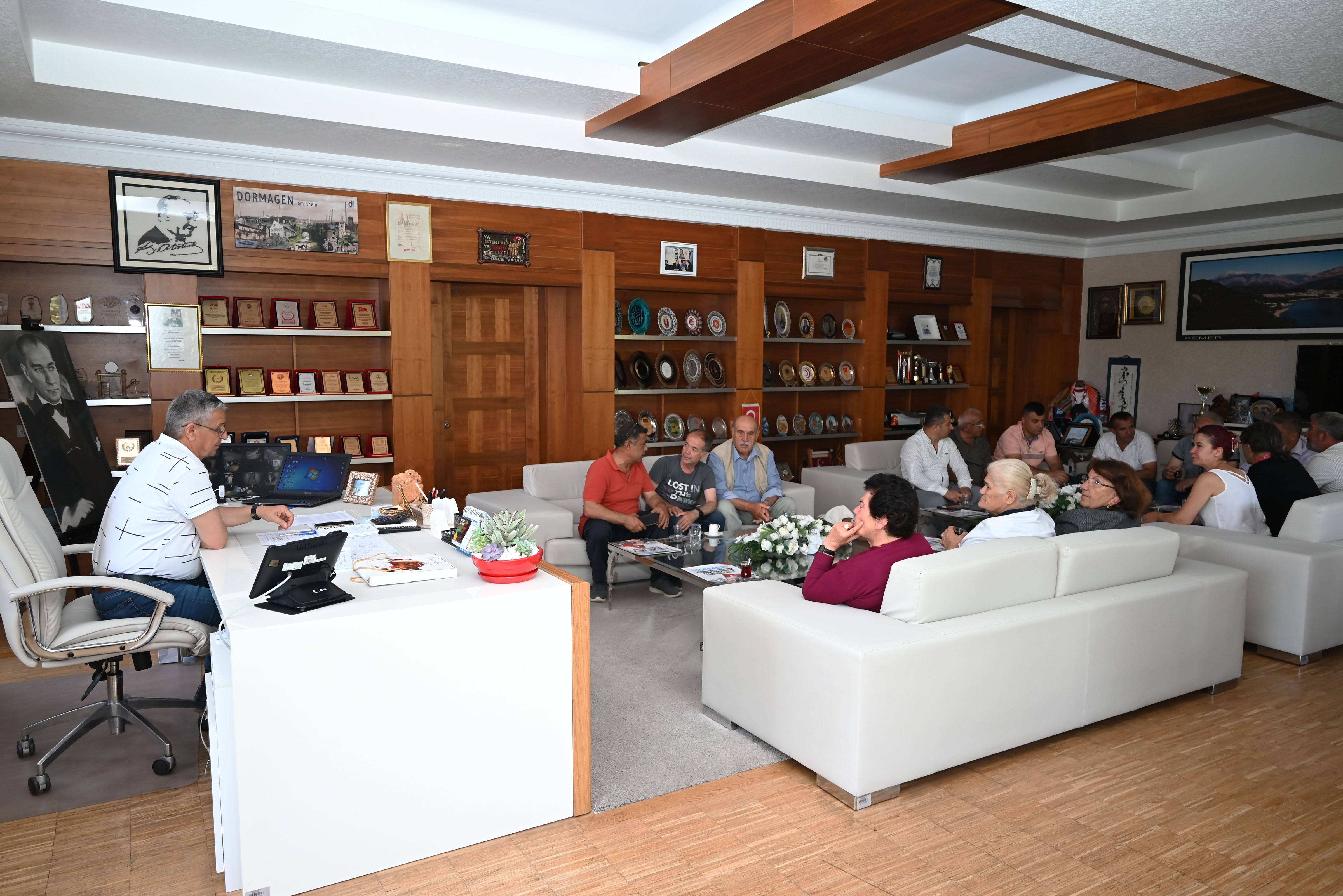 Kemer Belediyesi Meclis Üyesi ve Kemer Alevi Kültür Derneği Başkanı Ali Rıza Akar ile yönetim kurulu üyeleri, Kemer Belediye Başkanı Necati Topaloğlu’nu makamında ziyaret etti.
