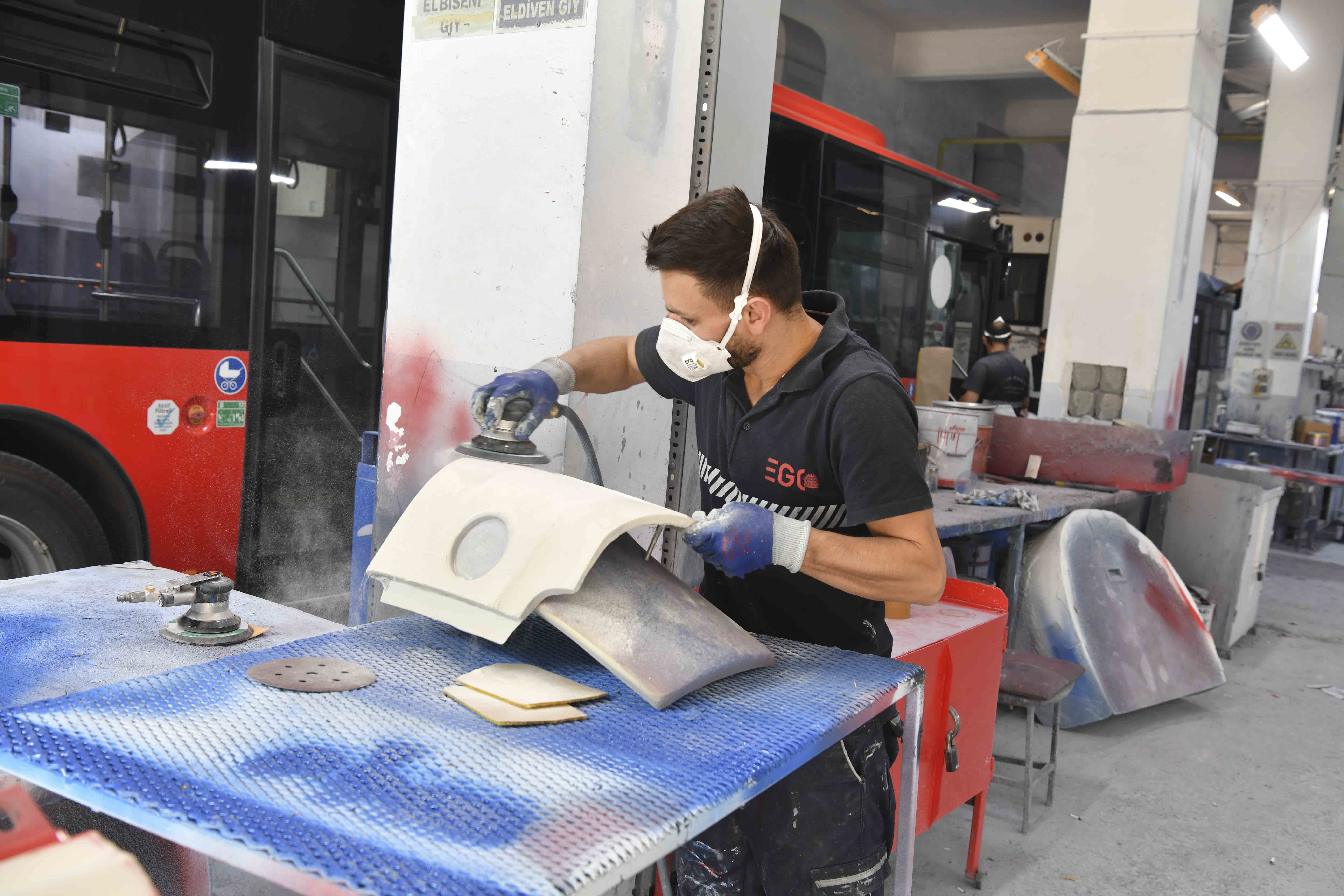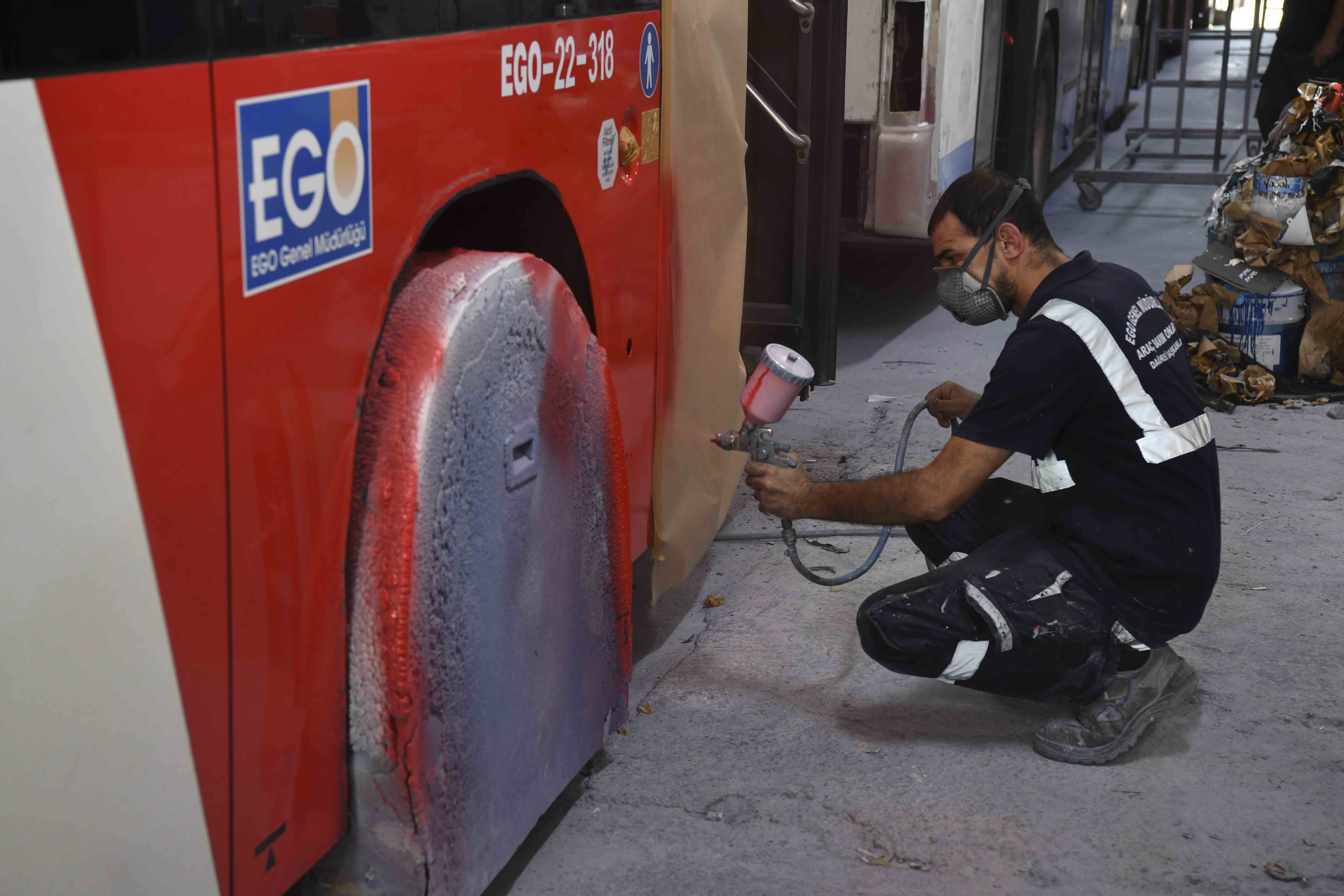 EGO Genel Müdürlüğü hayata geçirdiği çalışmalarla bakım ve onarım sürelerini kısaltarak otobüslerin daha kısa sürede tekrar hizmete girmesine olanak tanıyor. Böylelikle şehir içi ulaşımda aksamaların önüne geçerek, vatandaşlara daha kesintisiz ve güvenilir bir ulaşım hizmeti sunulmasını sağlanıyor. Genel olarak model yılı 2010 ve öncesi olan araçların yenileme, bakım ve onarımının yapıldığını belirten EGO Genel Müdürü Dr. Taylan Engin, “Son 3 aydır başlattığımız bir çalışmayla kullanılamaz durumda olan, yanmış, şasesi çürümüş, kaporta bakımı gerektiren araçlarımızı burada sil baştan tekrar ayağa kaldırıyoruz. Çok detaylı bir işçilikle, çok özverili bir çalışmayla eski otobüslerimizi tekrar kullanılabilir hale getiriyoruz.Bunları yaparken aynı zamanda bir kalite kontrol sürecimiz de var, işlemler mühendislerimizin kontrolünden geçiyor. Araçları onay aldıktan ve testleri yapıldıktan sonra da filomuza tekrar katıyoruz. Eski araçlarımız yedek parça sıkıntısı yaşayan, piyasada işçiliğinin yapılması zor olan araçlar.Elimizdeki kısıtlı kaynakları doğru yönetmeye çalışıyoruz. O yüzden de tek tek bütün yatan araçlarımız inceleniyor. Bunların içinde ayağa kaldırabileceğimiz tüm araçlarımızı bir plan dâhilinde içeri alıp bu yenileme sürecine kattık. Böylece hem önemli bir tasarruf sağlamış oluyoruz hem de aynı zamanda elimizdeki malzemeyi de daha etkin kullanmış oluyoruz” dedi.