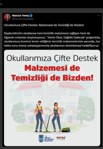 Ankara Büyükşehir Belediyesi'nden Okullara Çifte Destek: Malzeme ve Temizlik Hizmeti