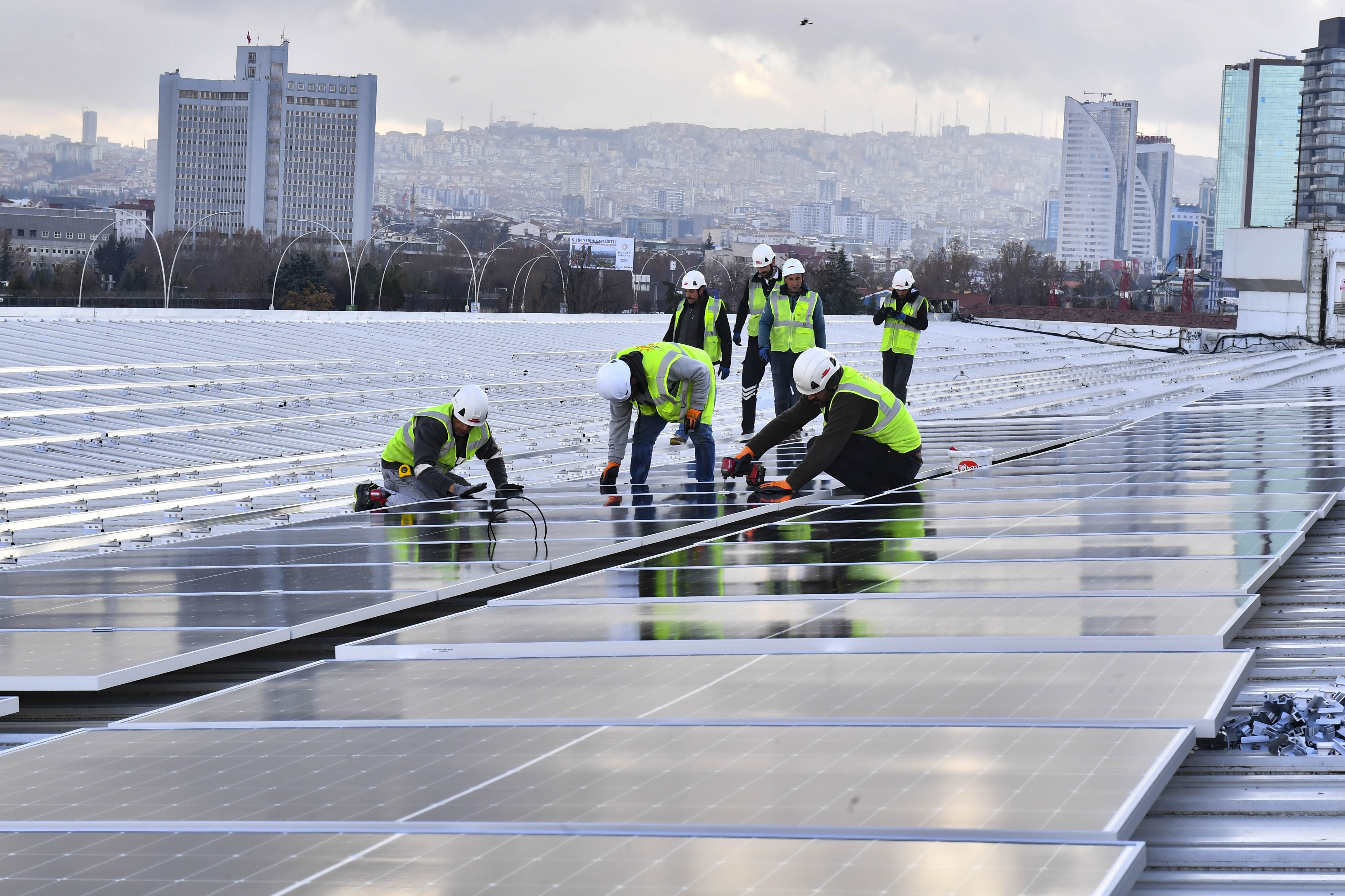 Hayata geçirdiği çevre dostu ve tasarruf odaklı projelerle tüm Türkiye’ye örnek olan Ankara Büyükşehir Belediyesi, geçtiğimiz yıl kapsamlı bir tadilattan geçerek yepyeni bir görünüme kavuşan AŞTİ’nin çatısına Güneş Enerjisi Santrali kuruyor.