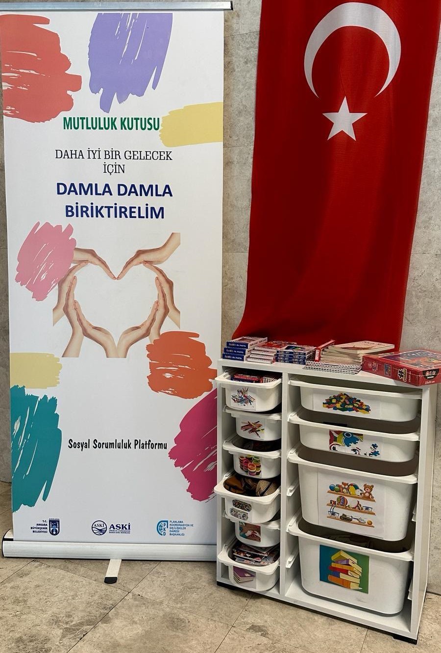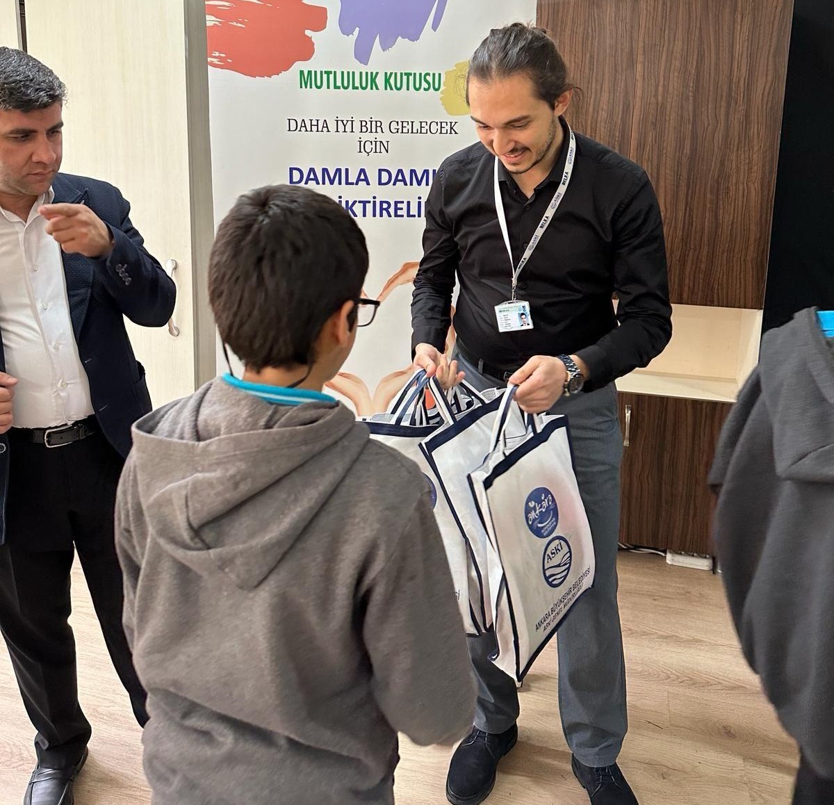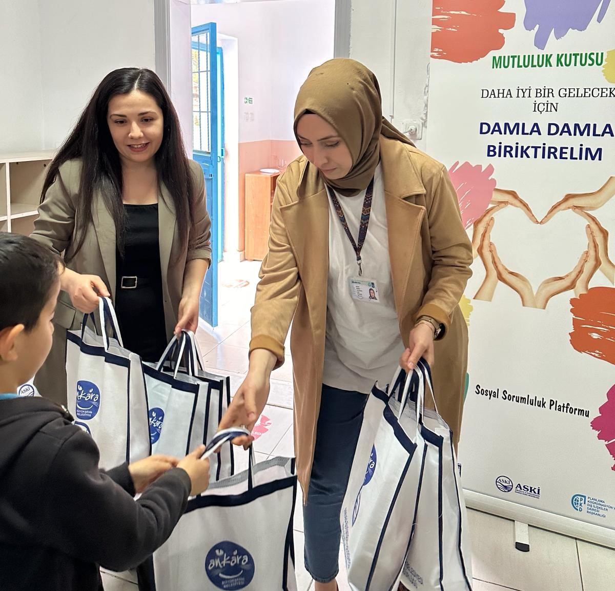 ASKİ Genel Müdürlüğü, “Bir Kutu Mutluluk” adlı sosyal sorumluluk projesini hayata geçiriyor.Proje kapsamında ASKİ çalışanı gönüllülerin bağışları ile toplanan kırtasiye araç gereçleri, kitap ve oyuncaklar, kırsal bölgelerdeki imkânları kısıtlı ilk ve ortaokul öğrencileri ile buluşacak.Ayrıca belirlenen okulları ziyaret eden ASKİ ekibi, çocuklara suyun bilinçli tüketimi konusunda sunum da yapacak.ASKİ Genel Müdürlüğü Planlama, Koordinasyon ve Dış İlişkiler Dairesi Başkanlığı, 2021 yılında, “Su Kaynakları Yönetimi ve İklim Değişikliği Farkındalık Projesi”ni başlattı.Proje çerçevesinde Başkentteki okulları ziyaret eden ASKİ uzmanları, su tasarrufu konusunda farkındalık yaratabilmek için öğrencilere animasyon destekli sunum yapıyor.Bir taşla iki kuş vurmaya hazırlanan ASKİ, şimdi de “Bir Kutu Mutluluk Projesi”ni devreye sokuyor. Böylece kırsal bölgelerdeki okullarda “Su Kaynakları Yönetimi ve İklim Değişikliği Farkındalık Projesi” ile “Bir Kutu Mutluluk Projesi” birlikte ilerleyecek. Proje kapsamında artık ziyaret edilen kırsal bölgelerdeki okullara, hediye kutu götürülecek.Kutunun içeriğinde ASKİ personeli gönüllülerin bağışları ile toplanan kırtasiye araç gereçleri, öğrencilerin bilinç ve farkındalık düzeyini artırmaya yönelik kitap ve oyuncaklar yer alacak.Çocuklara ayrıca su tasarrufu konusunda bilgiler de verilecek. İLK ZİYARET AYAŞ ÇANILLI İLKÖĞRETİM OKULUNAASKİ ekibinin, “Bir Kutu Mutluluk” projesi kapsamında ziyaret ettiği ilk okul; Ayaş ilçesi Çanıllı Köyü İlköğretim Okulu oldu. “Bir Kutu Mutluluk Projesi”ne ilişkin bilgi veren ASKİ Genel Müdür Yardımcısı, Planlama, Koordinasyon ve Dış İlişkiler Dairesi Başkanı Muhammed Ercan, şöyle konuştu: