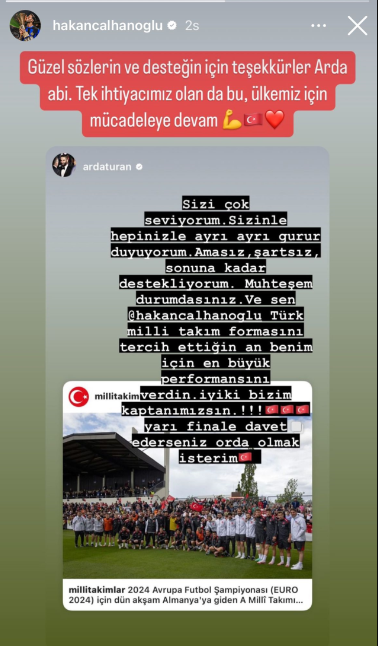 A Milli Takım'ın eski kaptanlarından Arda Turan, 2024 Avrupa Futbol Şampiyonası'nda Türkiye'nin Portekiz'e 3-0 mağlup olduğu maçın ardından milli oyunculara destek açıklaması yaptı.