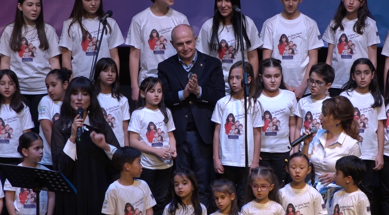 Ayşegül Aldinç, Büyükçekmece Çocuk Korosu ile birlikte kendi şarkılarını söyledi
