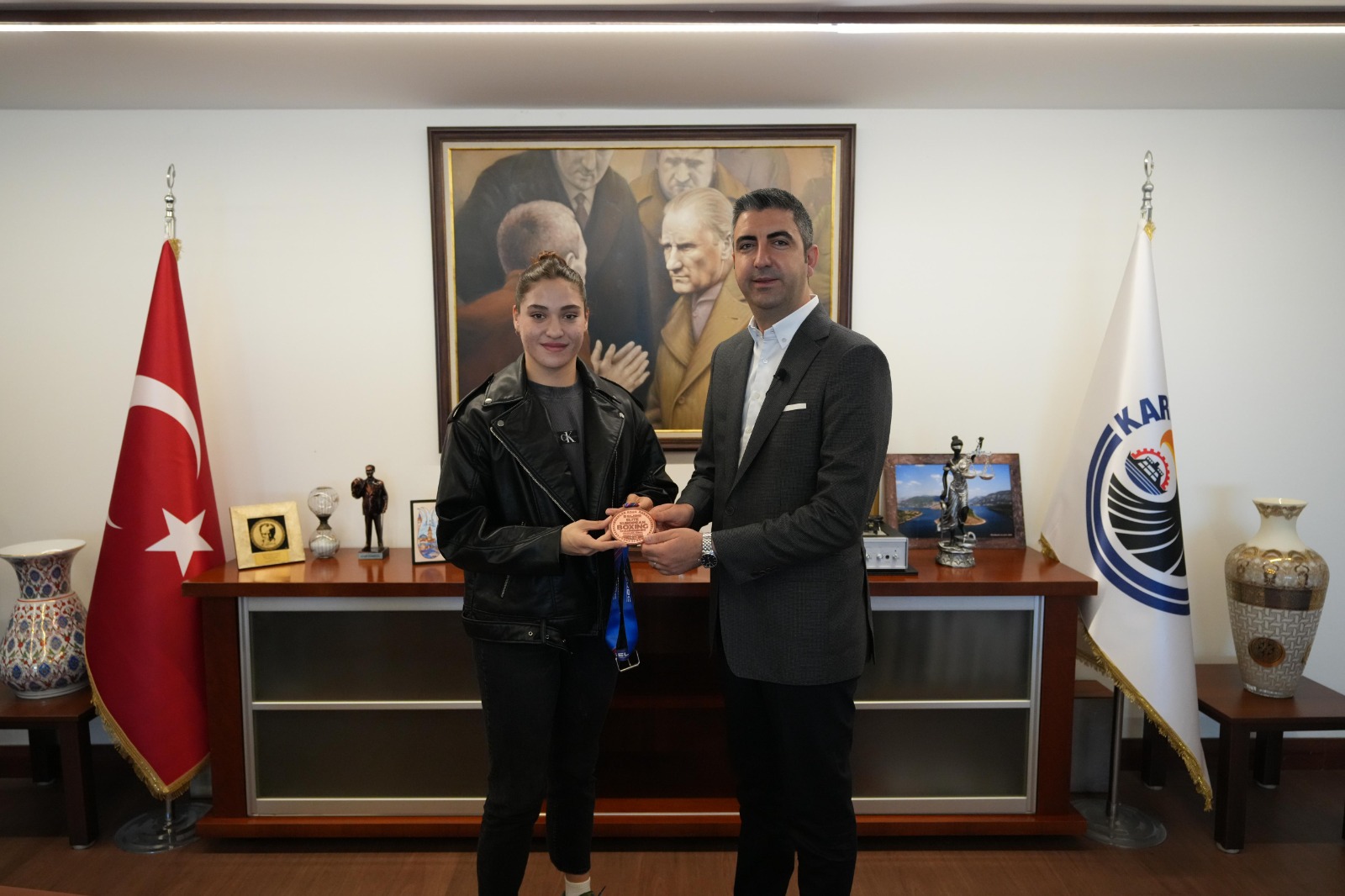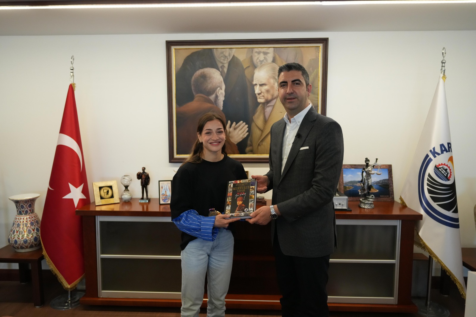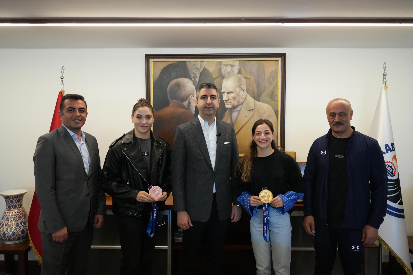 Sırbistan’da düzenlenen Avrupa Boks Şampiyonası’nda 4. kez finale kalan ve üst üste üçüncü zaferini yaşayarak altın madalyayı ülkemize kazandıran Kartallı boksör Buse Naz Çakıroğlu, Kartal Belediye Başkanı Gökhan Yüksel’i makamında ziyaret etti.