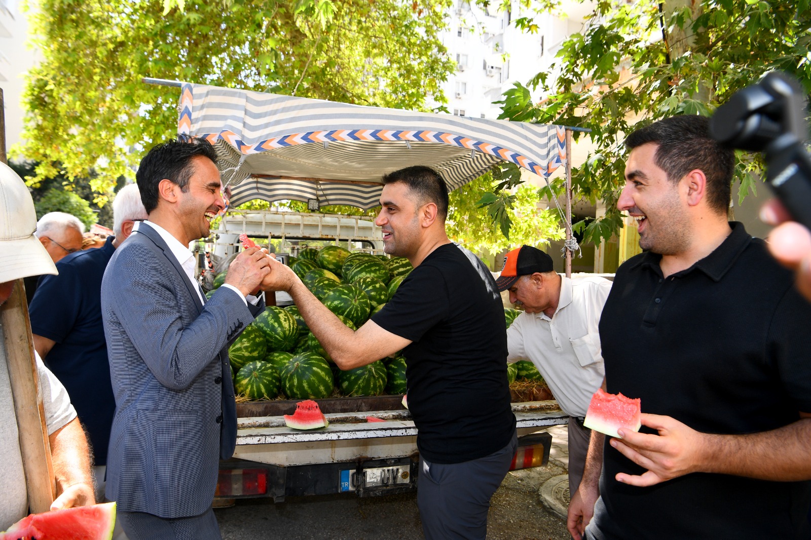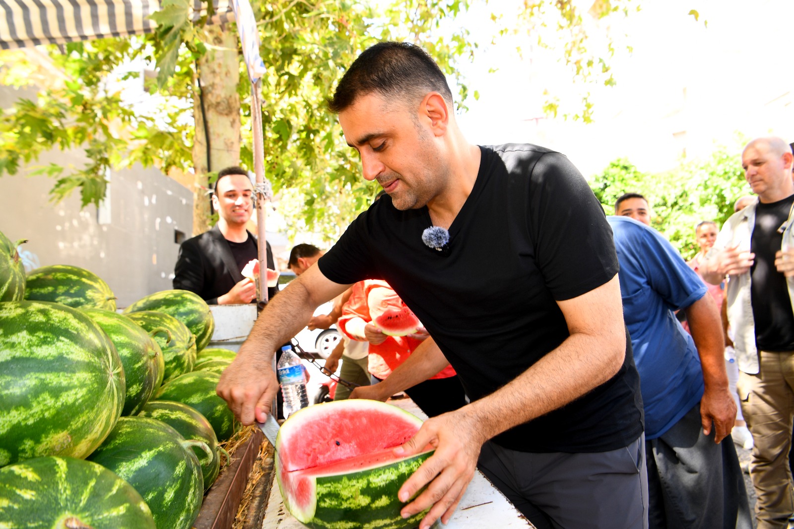 Esnaf ve kahvehane ziyaretleri de yapan Başkan Kozay, vatandaşların talep ve şikayetlerini dinleyip birim amirlerine verdiği talimatlarla sorunların çözülmesini sağlarken, mesai arkadaşlarına da kendi elleriyle kestiği karpuzları ikram etti.