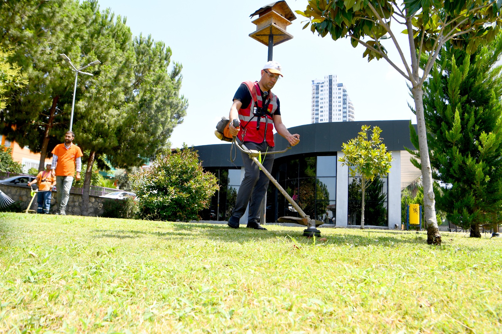 Güzelyalı Mahallesi’nde bulunan Bülent Ecevit Kültür ve Sanat Parkı’nda Park ve Bahçeler Müdürlüğü ekiplerinin çalışmalarına katılan Başkan Kozay, burada da ekip arkadaşlarıyla birlikte parkın çimlerini biçti. Sıcak havaya rağmen parkın bakımını titizlikle gerçekleştiren mesai arkadaşlarına teşekkür eden Başkan Kozay, parkta incelemelerde de bulundu. SU OYUN PARKINDAKİ ÇOCUKLARLA BULUŞTU