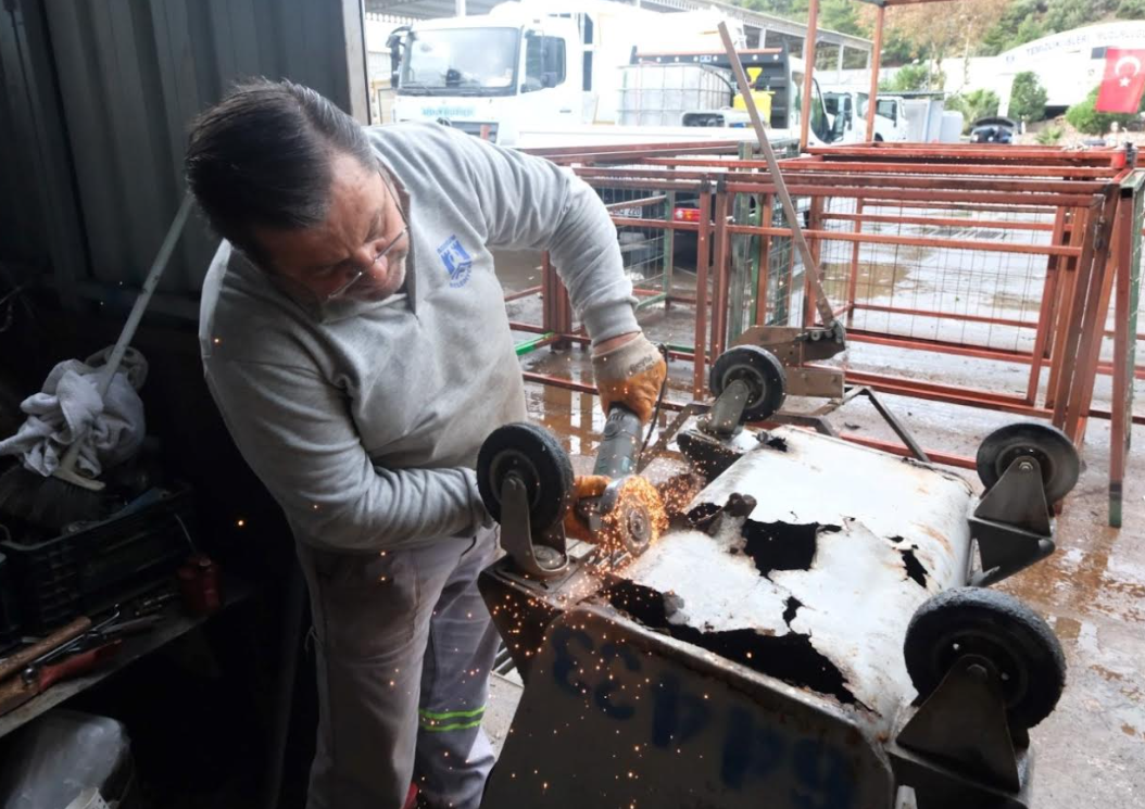 Bodrum Belediyesi, çevreye duyarlı belediyecilik anlayışı kapsamında sürdürülebilirlik ve geri dönüşüm faaliyetlerini yaygınlaştırmayı sürdürüyor.Temizlik İşleri Müdürlüğü’ne bağlı ekipler, hurdaya ayrılan malzemeleri yeniden değerlendiren çalışmalar yürütürken, kullanım ömrünü tamamlamak üzere olan araç ve gereçleri de onararak tekrar hizmete kazandırıyor.Konacık Mahallesi’ndeki Temizlik İşleri Müdürlüğü Kademesinde yapılan çalışmalar doğrultusunda, çeşitli nedenlerle kullanılamaz hâle gelen demirler ve çit telleri toplanarak çöp konteynerlerinin çevresine yerleştirilen yeşil çitli konteyner kafeslerine dönüştürülüyor. Bu uygulama sayesinde çevre düzeni iyileştirilirken kötü görüntülerin de önüne geçiliyor. 2025 yılı içerisinde 171 konteyner kafesi tamir edildi, 93 adet yeni kafes ise tamamen geri dönüşüm malzemelerinden üretildi.Pratik ve Verimli Çalışma İçin Özel Üretim Araçlar