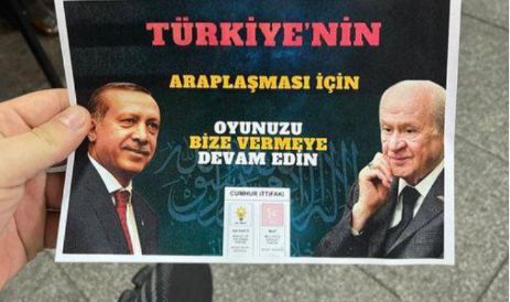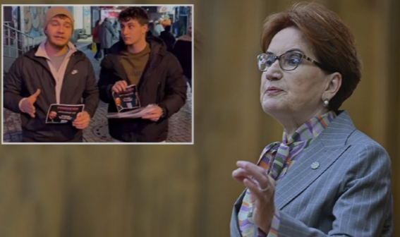 Üzerinde Cumhurbaşkanı Erdoğan ve Devlet Bahçeli'nin fotoğraflarının bulunduğu broşürleri dağıtan İYİ Parti Gençlik Kolları üyeleri gözaltına alındı. Haberi duyuran İYİ Parti Genel Başkanı Meral Akşener, "Türksüz Türkiye hayal edenler bu gece de iş başında.3 genç sadece demokratik haklarını kullandıkları için şu anda karakolda ifade veriyor. Süreci arkadaşlarımla birlikte bizzat takip ediyorum" dedi.İYİ Parti Genel Başkanı Meral Akşener, gençlik kollarından 3 gencin gözaltına alındığını duyurarak tepki gösterdi. Akşener, "Türksüz Türkiye hayal edenler bu gece de iş başında.İstanbul İl Gençlik Kollarımızdan Oğuz Talha Uz, Baturalp Akalın ve Akif Demirel sadece demokratik haklarını kullandıkları için şu anda karakolda ifade veriyor. Süreci arkadaşlarımla birlikte bizzat takip ediyorum" ifadelerini kullandı.İstanbul'da İYİ Parti Gençlik Kolları'ndan üç kişi, üzerinde Cumhurbaşkanı Tayyip Erdoğan ve MHP lideri Devlet Bahçeli'nin fotoğraflarının yer aldığı "Türkiye'nin Araplaşmaması için oyunuzu bize vermeye devam edin" yazan broşürler dağıtırken gözaltına alındı. Üç kişiye götürüldükleri karakolda "halkı kin ve düşmanlığa tahrik veya aşağılama" suçlaması yöneltildi.