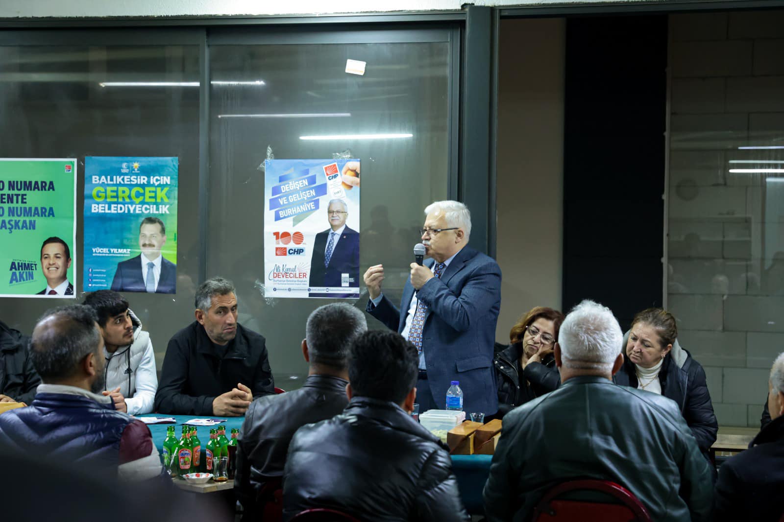 Burhaniye Belediye Başkanı ve CHP Burhaniye Belediye Başkan Adayı Ali Kemal Deveciler, CHP Meclis Üyesi Adayları ile birlikte Hürriyet Mahallesi Karaca Kahvesi'nde düzenlenen buluşmada hemşehrileriyle bir araya geldi.