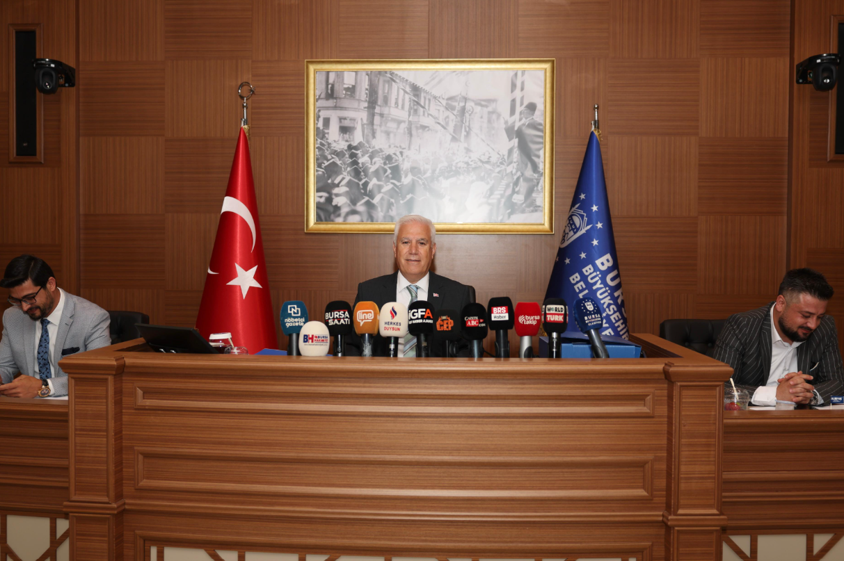 Bursa Büyükşehir Belediyesi’nin Haziran ayı birinci meclis oturumu, Büyükşehir Belediye Başkanı Mustafa Bozbey’in başkanlığında gerçekleştirildi. Meclis toplantısında grup sözcüleri gündeme ilişkin görüşlerini ifade ederken, Başkan Bozbey de hem kentle ilgili gelişmeleri hem de ülke ve dünya gündemini değerlendirdi.Konuşmasına kısa süre önce elim bir trafik kazasında yaşamını yitiren Manisa Büyükşehir Belediye Başkanı Ferdi Zeyrek’i anarak başlayan Başkan Bozbey, merhum başkana Allah’tan rahmet, ailesine ve tüm sevenlerine sabır ve başsağlığı dileklerini iletti. Ardından geride kalan Babalar Günü’nü de unutmayarak tüm babaların geçmiş Babalar Günü’nü kutladı.Orhaneli ilçesine bağlı Yürecik Mahallesi’nde meydana gelen anız yangınına da değinen Başkan Bozbey, bu tür yangınların hem doğaya hem de insan yaşamına büyük zarar verdiğini vurgulayarak çiftçileri dikkatli olmaya ve anız yakmamaya davet etti.İsrail'e Gazze Tepkisi: “Filistinli Kardeşlerimizin Acısı Hepimizin Acısıdır”