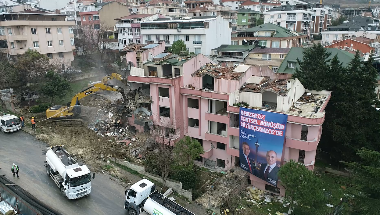 Beklenen İstanbul depremi öncesi kentsel dönüşüm çalışmalarını hız kesmeden sürdüren Büyükçekmece Belediyesi, deprem riski taşıyan yapıları kentsel dönüşüm projesi kapsamında yıkmaya devam ediyor.