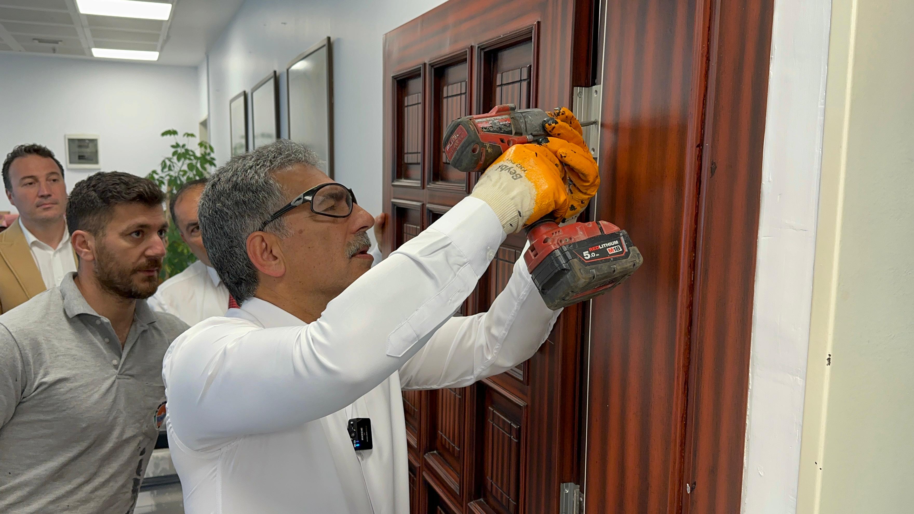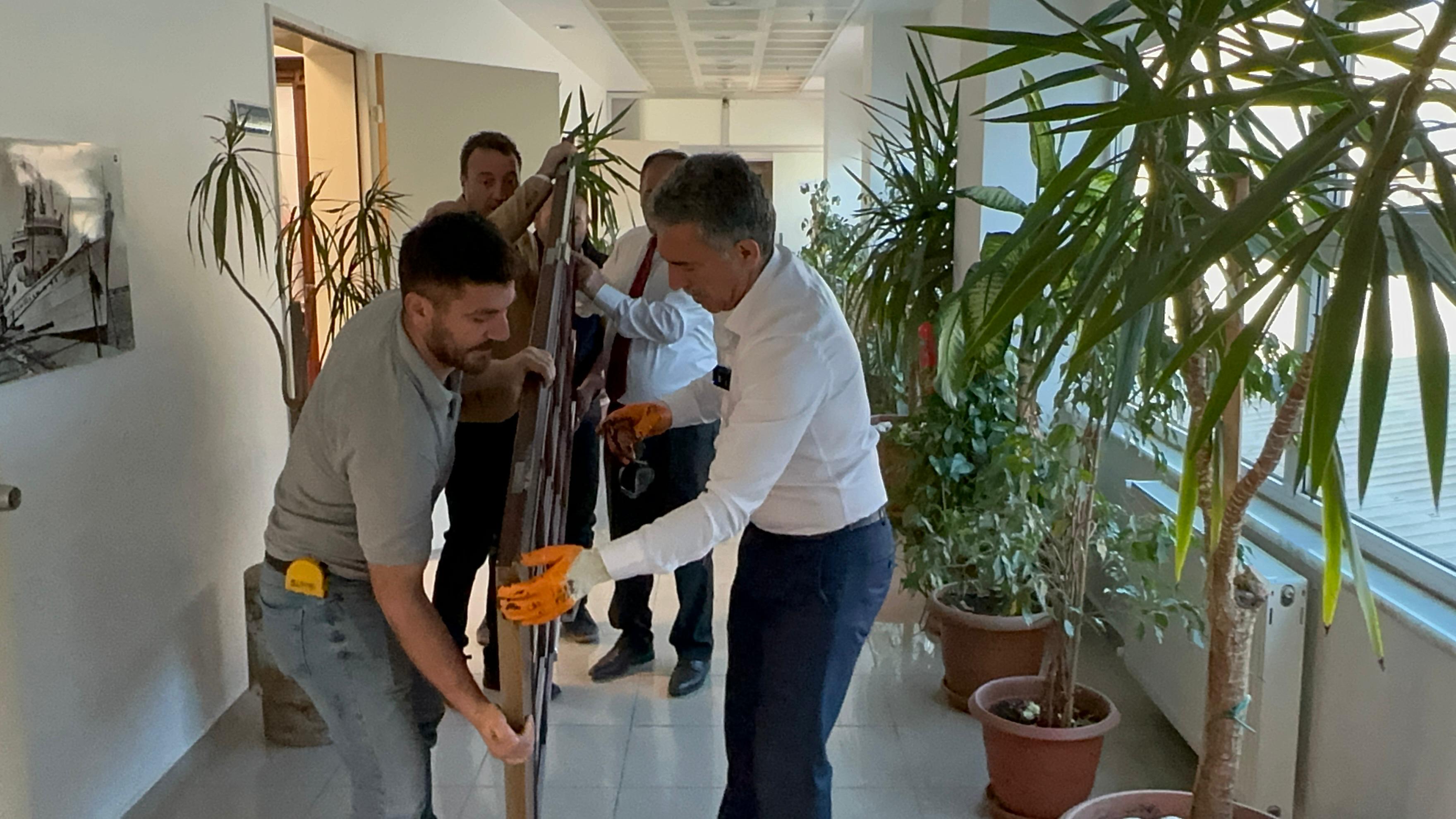 CHP'den Seçime Giren Gemlik Belediye Başkanlığını Kazanan Şükrü Deviren makam kapısını söktü