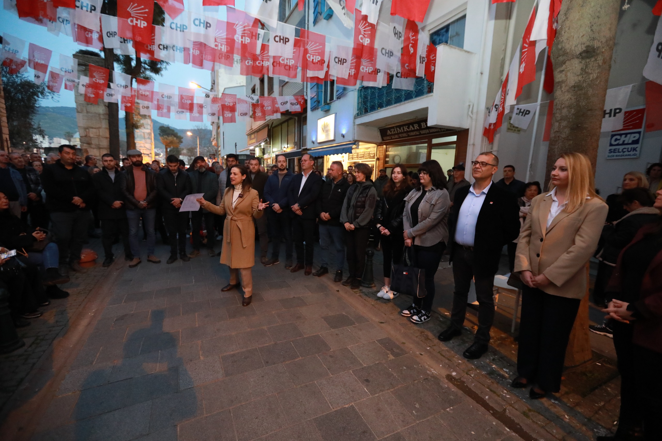 Cumhuriyet Halk Partisi Efes Selçuk İlçe Örgütü, belediye meclis üyesi adaylarını açıkladı. Partisinin ilçe örgütüne meclis üyesi adaylarını tanıtan mevcut Belediye Başkanı ve CHP Efes Selçuk Belediye Başkan Adayı Filiz Ceritoğlu Sengel; “Partimizin bayrağını Efes Selçuk Belediyesi’nden aşağıya indirmeyeceğiz” dedi. Seçimlere güçlü kadrolarla giren Cumhuriyet Halk Partisi (CHP) Efes Selçuk İlçe Örgütü, önemli bir adım atarak meclis üyesi adaylarını belirleme sürecinde parti tarihinde bir ilki gerçekleştirdi.Partisinin ilçe binası önünde konuşan Başkan Filiz Ceritoğlu Sengel, bu dönemde mevcut meclis üyeleriyle, önceki dönem meclis üyeleri ve ilçe başkanlarıyla bir araya gelerek ortak bir liste oluşturduklarını belirtti.Mevcut meclis üyeleri, önceki dönem meclis üyeleri ve şu an aday olan meclis üyelerinin bir arada olmasının CHP’nin köklü ve sürekliliği olan bir parti olduğunun kanıtı olduğuna dikkat çeken Filiz Başkan, meclis üyesi liste belirlemede farklı bir yöntem kullandıklarını söyledi.Listeler oluşturulurken CHP yönetim kurulu üyelerince kapalı usul bir seçim yaparak üyelerin hepsini belirlediklerini kaydeden Filiz Başkan, “Dosya vermeyenler vardı. Kimler listede yer almak istiyor dediğimizde gençler geldi, kadınlar geldi, esnaf geldi. “Biz oluruz hiç sıkıntı yok, yeter ki Cumhuriyet Halk Partisi çatısı altında olduğumuz ve size güç verdiğimiz belli olsun istiyoruz” dediler” dedi.YENİ KADROMUZA HEP BERABER GURURLAEfes Selçuk’ta Cumhuriyet Halk Partisi iktidarının devam edeceğinin altını çizen Filiz Başkan; “5 yıl zor zamanlar geçirdik. Hiç yaşamadığımız 100 yılda bir yaşanan her şey bizim dönemimize denk geldi. Adalet ve Kalkınma Partisi’ne bırakılan bir belediye olunca bir de borçlar üstümüze düştü. O yüzden bugüne kadar bütün düşmelerimizde bizi ayağa kaldıran tüm belediye meclis üyelerimize teşekkür ediyorum.Bundan sonraki beş yılda da Cumhuriyet Halk Partisi’nin bayrağını aşağıya indirmeyeceğiz. Çünkü Cumhuriyet Halk Partisi demek bu ülkenin teminatı demek. 2014’te gördük ki, Cumhuriyet Halk Partisi’nin olmaması demek Efes Selçuk’un ve belediyenin batışı demek.Geçmiş dönem ve mevcut meclis üyelerimiz olmak üzere hepsinin emeğiyle biz batan gemiyi tekrar su yüzüne çıkardık. Hepsine teşekkür ediyorum. Yeni kadromuza hep beraber gururla, yüksünmeden, Cumhuriyet Halk Partili olmanın ve taşıdığımız rozetin ne olduğunu bilerek Ak Parti’ye su taşıyanlara, “Durun bir dakika Cumhuriyet Halk Partisi burada demeyi bilenler olarak buradayız” diye konuştu.BİZ GENÇLERE GÜVENİNCumhuriyet Halk Partisi’nin yepyeni filizler veren dev bir çınar olduğuna vurgu yapan Filiz Başkan; “O filizler her zaman çoğalacaktır. Irmak bunlardan bir tanesidir” diyerek Cumhuriyet Halk Partisi’nin en genç ve listenin en son meclis üyesi adayı Irmak Öztürk’e söz verdi.Cumhuriyet Halk Partisi sevdasıyla doğduğunu belirten Irmak Öztürk; “Ben bir demokrasi sevdalısı, Atatürk sevdalısı olarak doğdum. Yaşım 18 olduğunda hiç düşünmeden Cumhuriyet Halk Partisi’ne üye oldum. Nedeni ise ülkemde her şeyin olup bittiğini görmem oldu…Bu cennet vatanımızda bizim gibi gençlerin söz sahibi olması gerektiğini düşündüm. Artık gençlerin çağa ayak uydurup memleketine faydalı olması gerektiğini düşündüm.Ben size Cumhuriyet Halk Partisi teminatı adı altında söz veriyorum ki; görev alırsam cumhuriyetçiliği, halkçılığı, laikliği, milliyetçiliği, devletçiliği, inkılapçılığı hiçbir şey gözetmeden yaşatacağıma ve yaşayacağıma ant içerim.Biz gençlere güvenin” dedi.