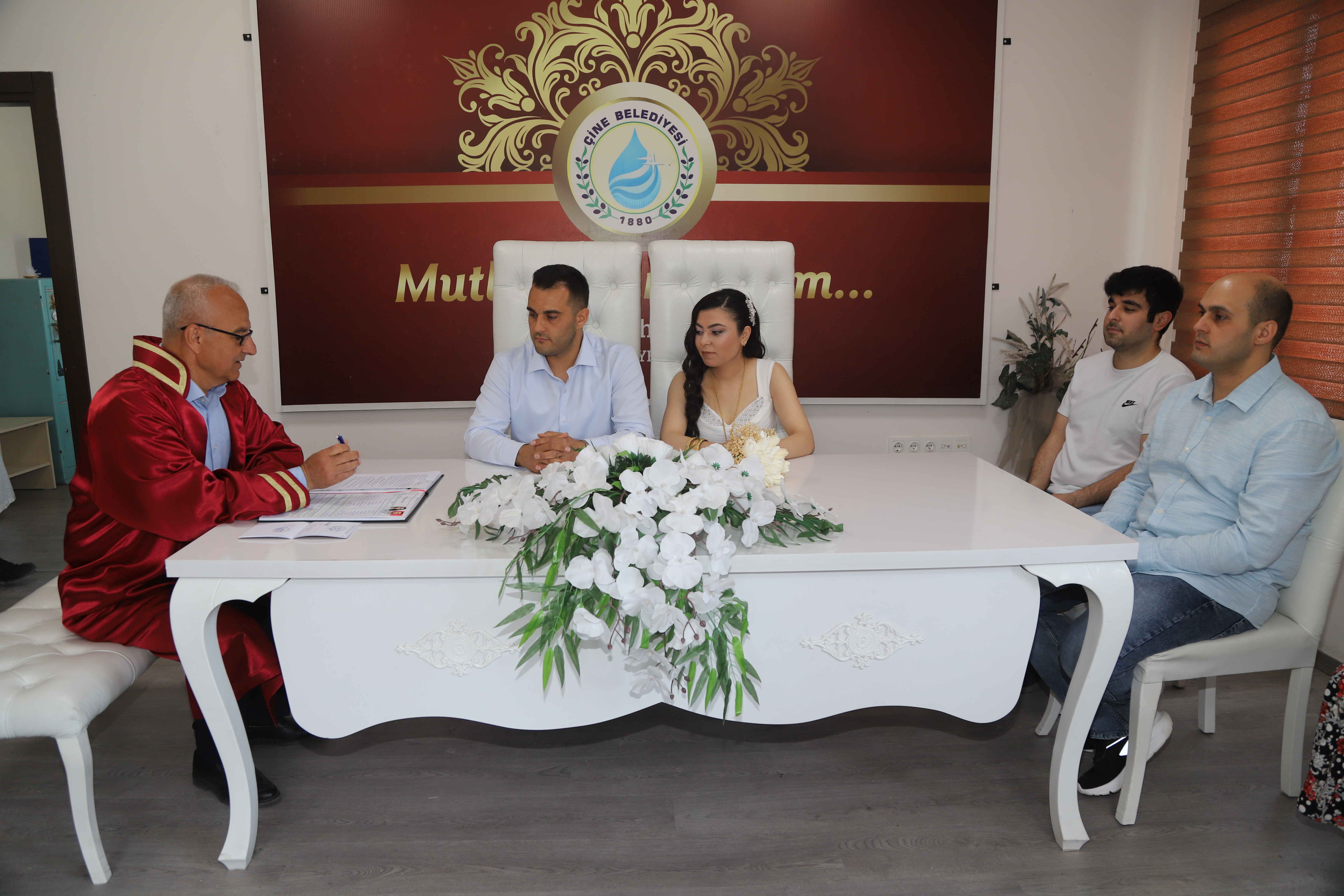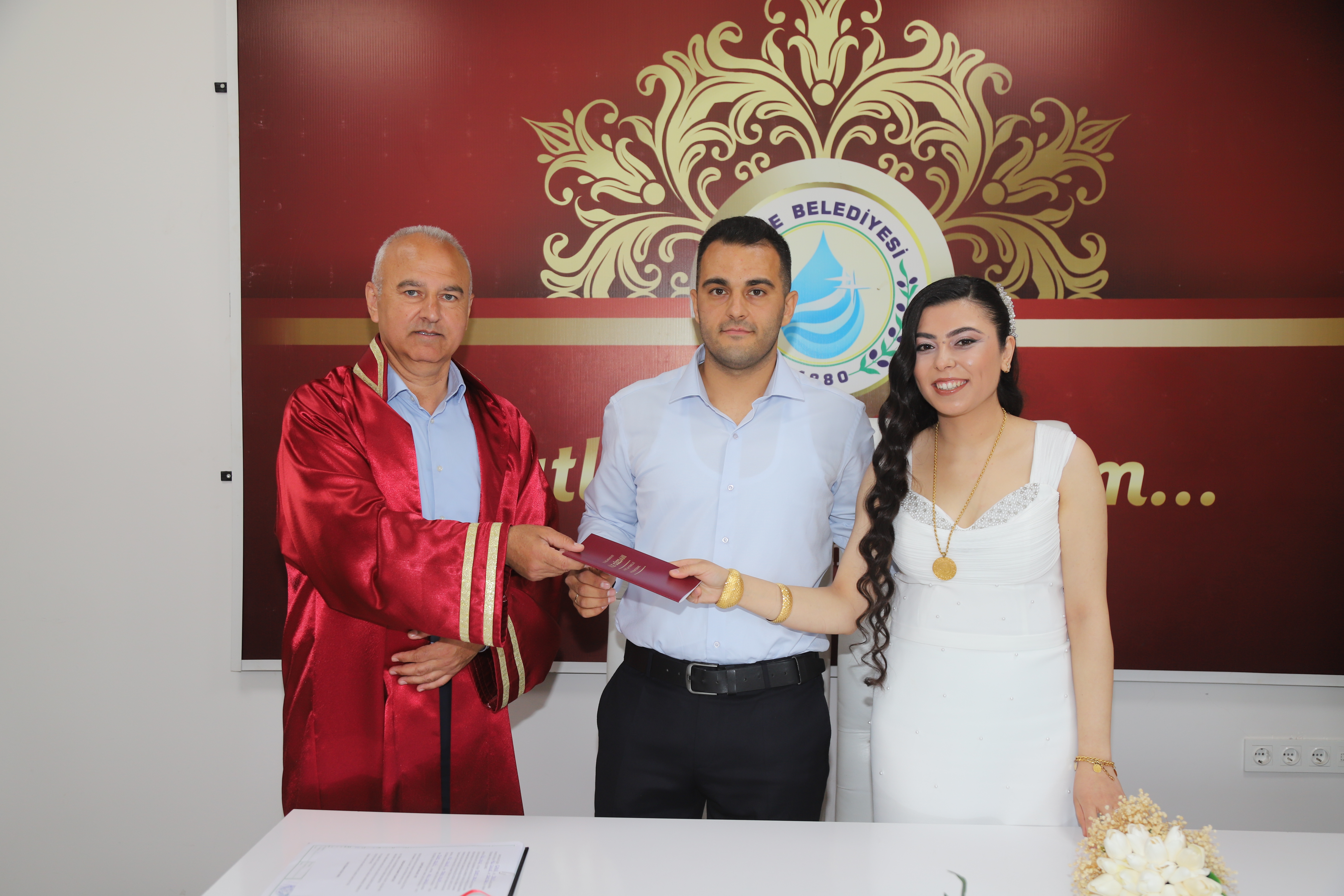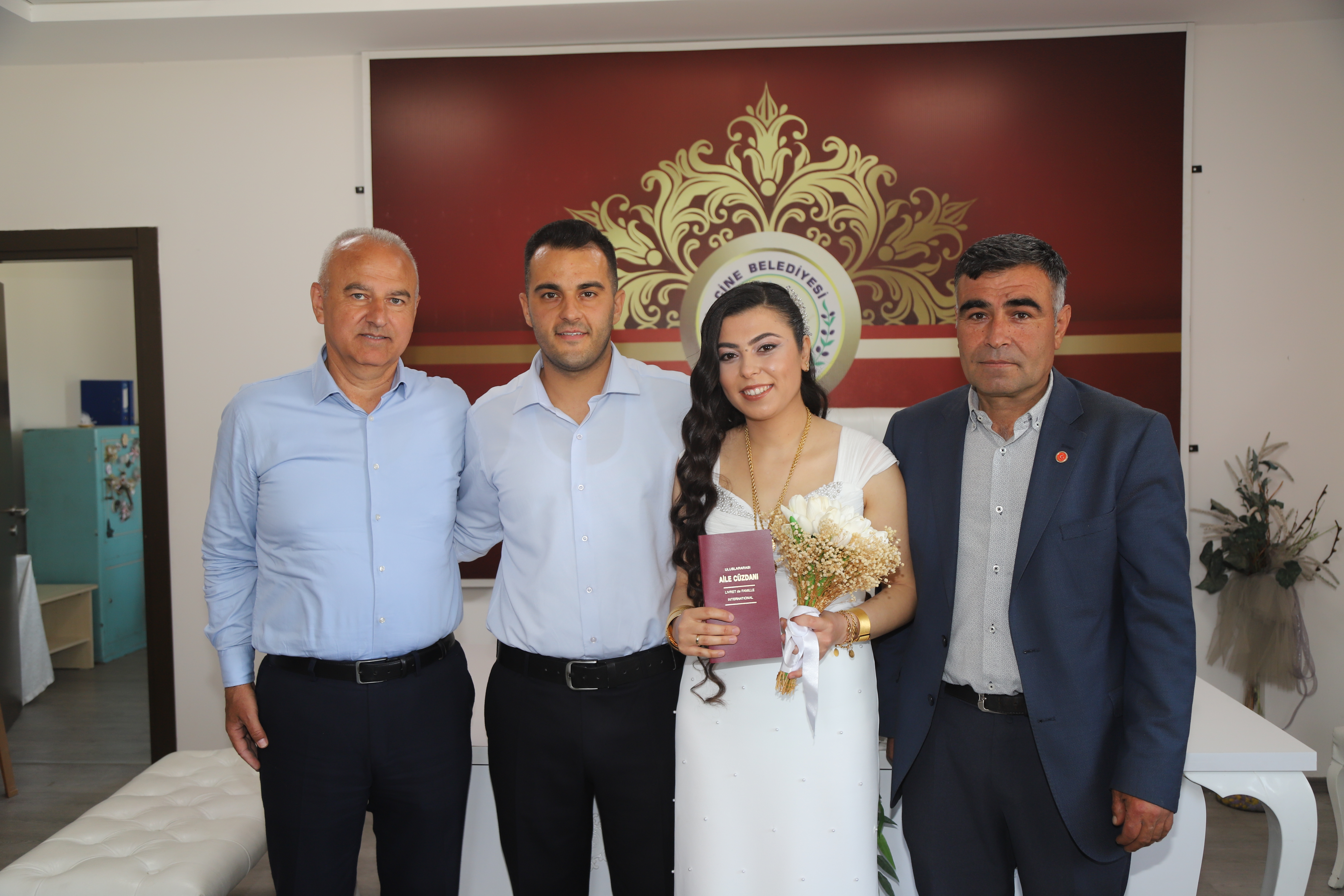 Başkan Mehmet Kıvrak, Ovacık Mahallesi Muhtarı Cengiz Çakır- Nesibe Çakır çiftinin kızları Aslı ile Ovacık Mahallesi Merhum İmamı Osman Deniz- Naciye Deniz çiftinin oğlu Enes’in nikâh merasimlerine katılarak, genç çiftlerin nikâhını kıydı.Çine Belediyesi Enver Salih Dinçer Sosyal Tesisleri’nde gerçekleşen nikâh töreninde Çineli çiftlerin hayatını birleştiren Başkan Kıvrak, evlilik cüzdanını geline takdim ederek şöyle konuştu:“Nikâhınız benim için de anlamlı oldu. 31 Mart Yerel Seçimleri sonrası devam ettiğim görevimde ilk nikâhımı kıydım.Hayırlı uğurlu olsun. Kıymetli ailelerinizi de tebrik ediyor, bir ömür boyu mutluluklar diliyorum.”