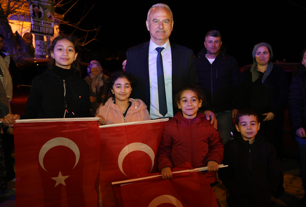 Çine Belediye Başkanı Mehmet Kıvrak, ziyaret ettiği Mutaflar Mahallesi’nde vatandaşlar tarafından Türk bayrakları, meşaleler ve çiçeklerle karşılandı.