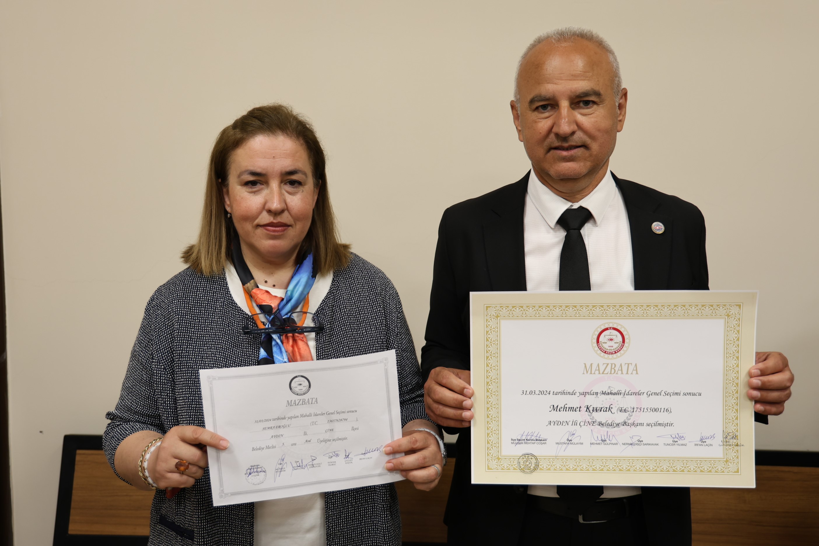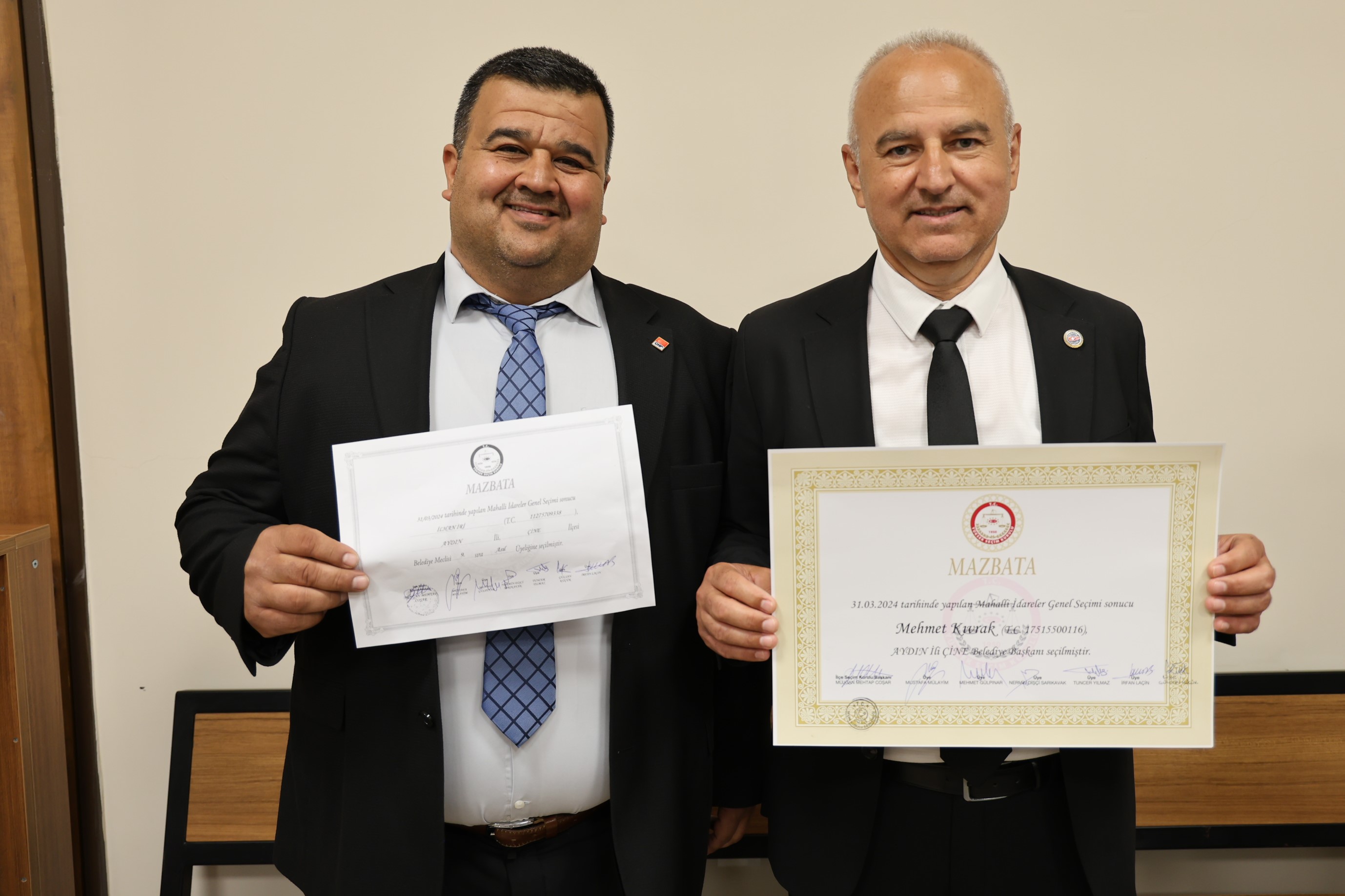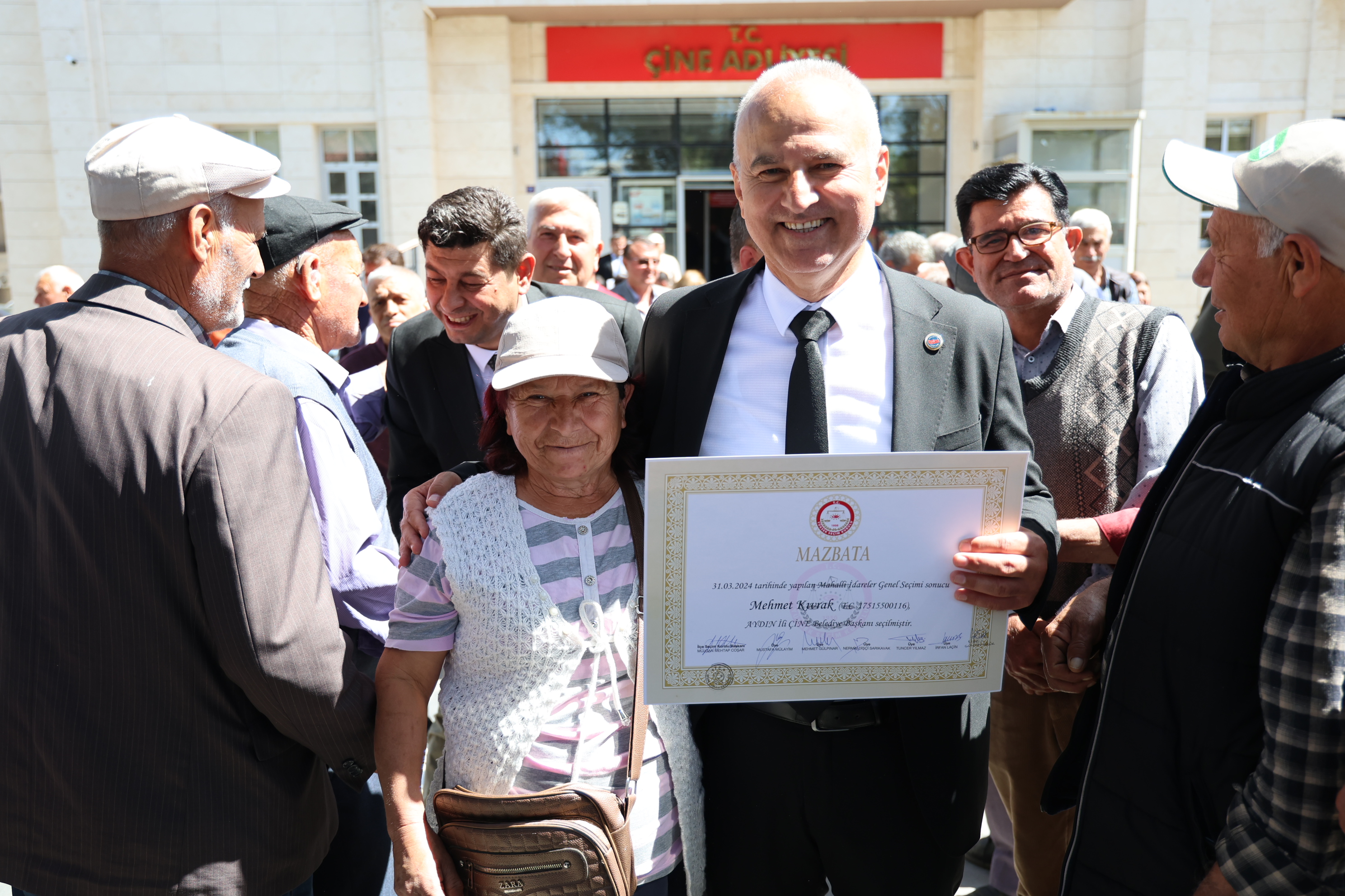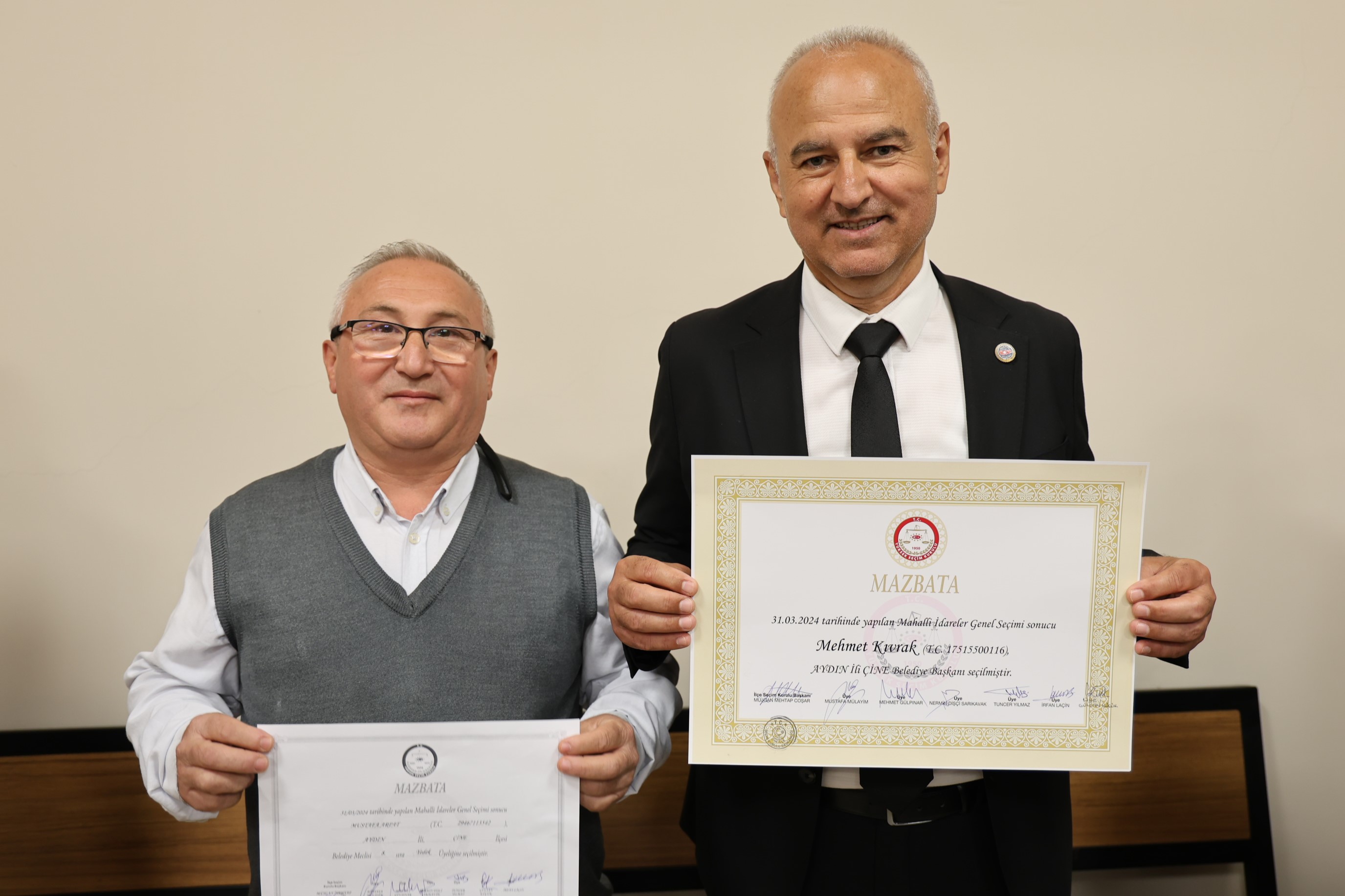 31 Mart Yerel Seçimlerinde büyük bir farkla Çine Belediye Başkanı seçilen Mehmet Kıvrak, mazbatasını aldı.