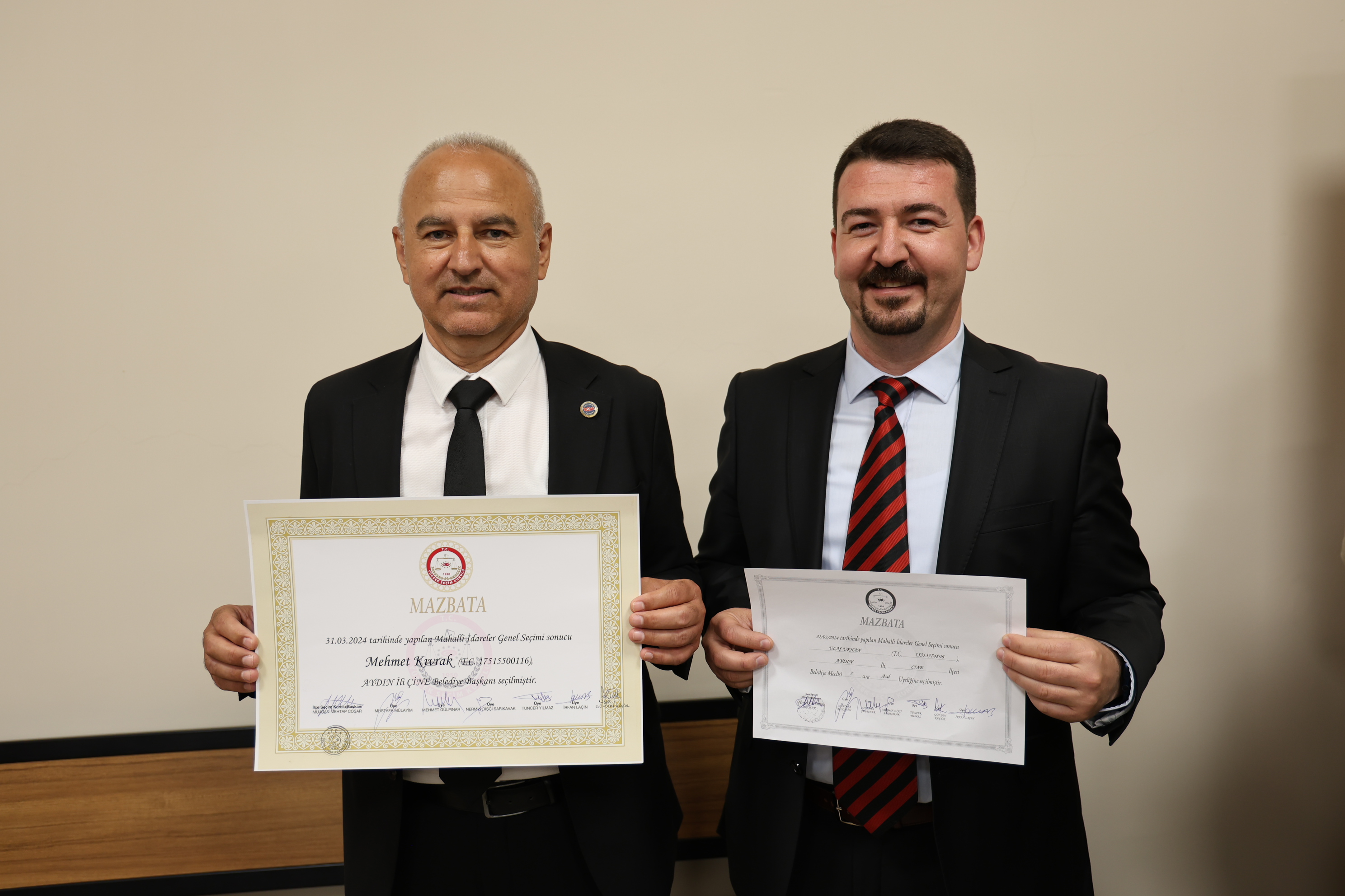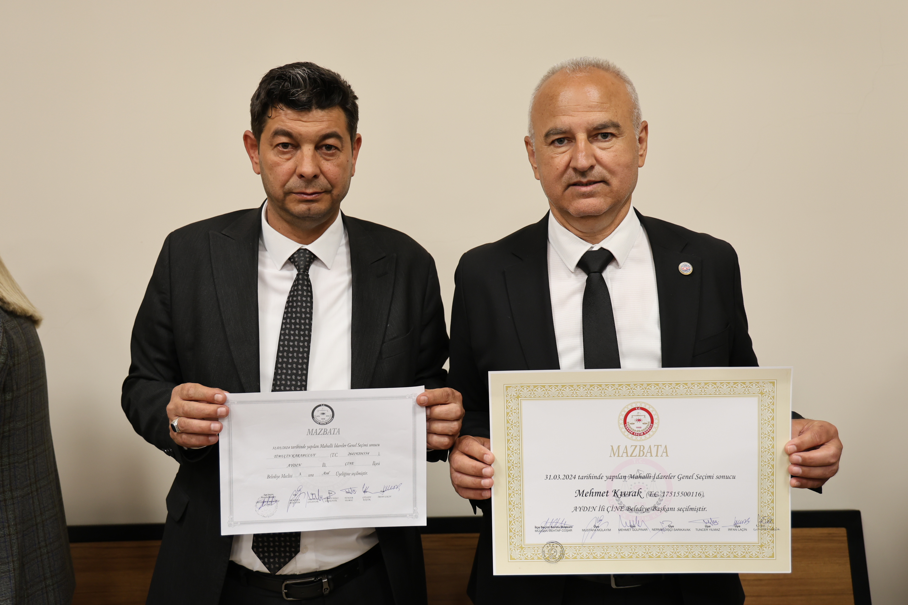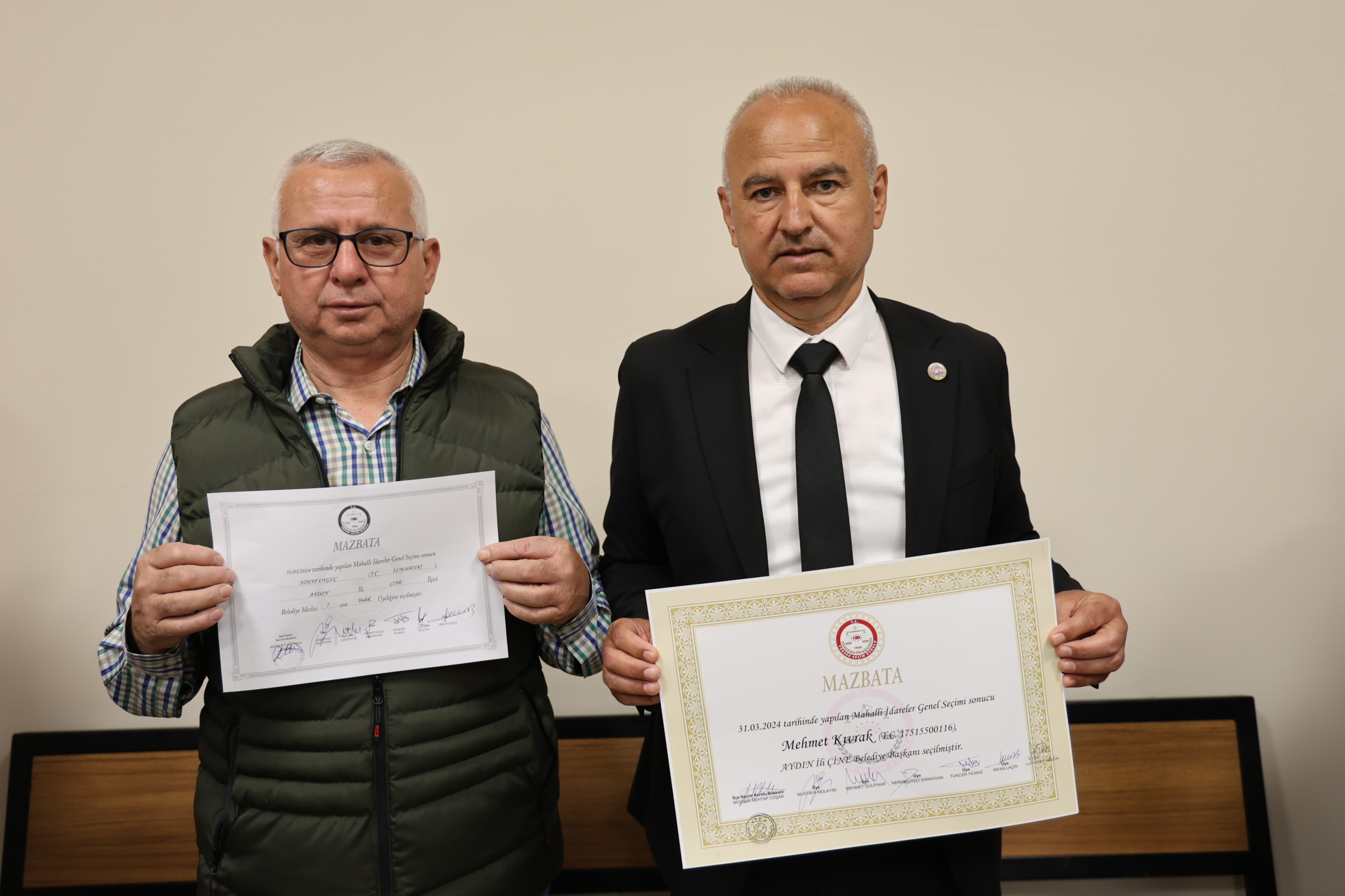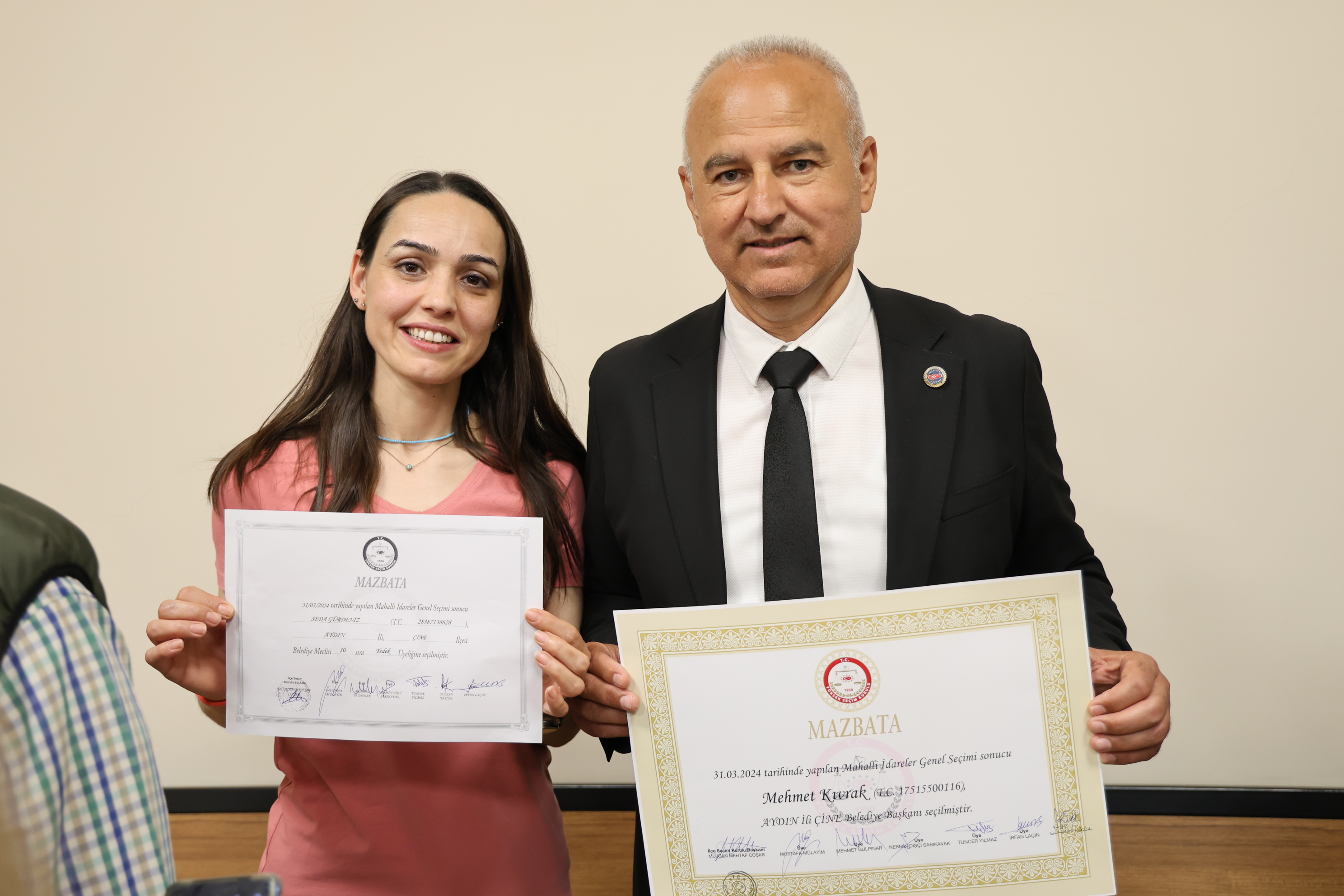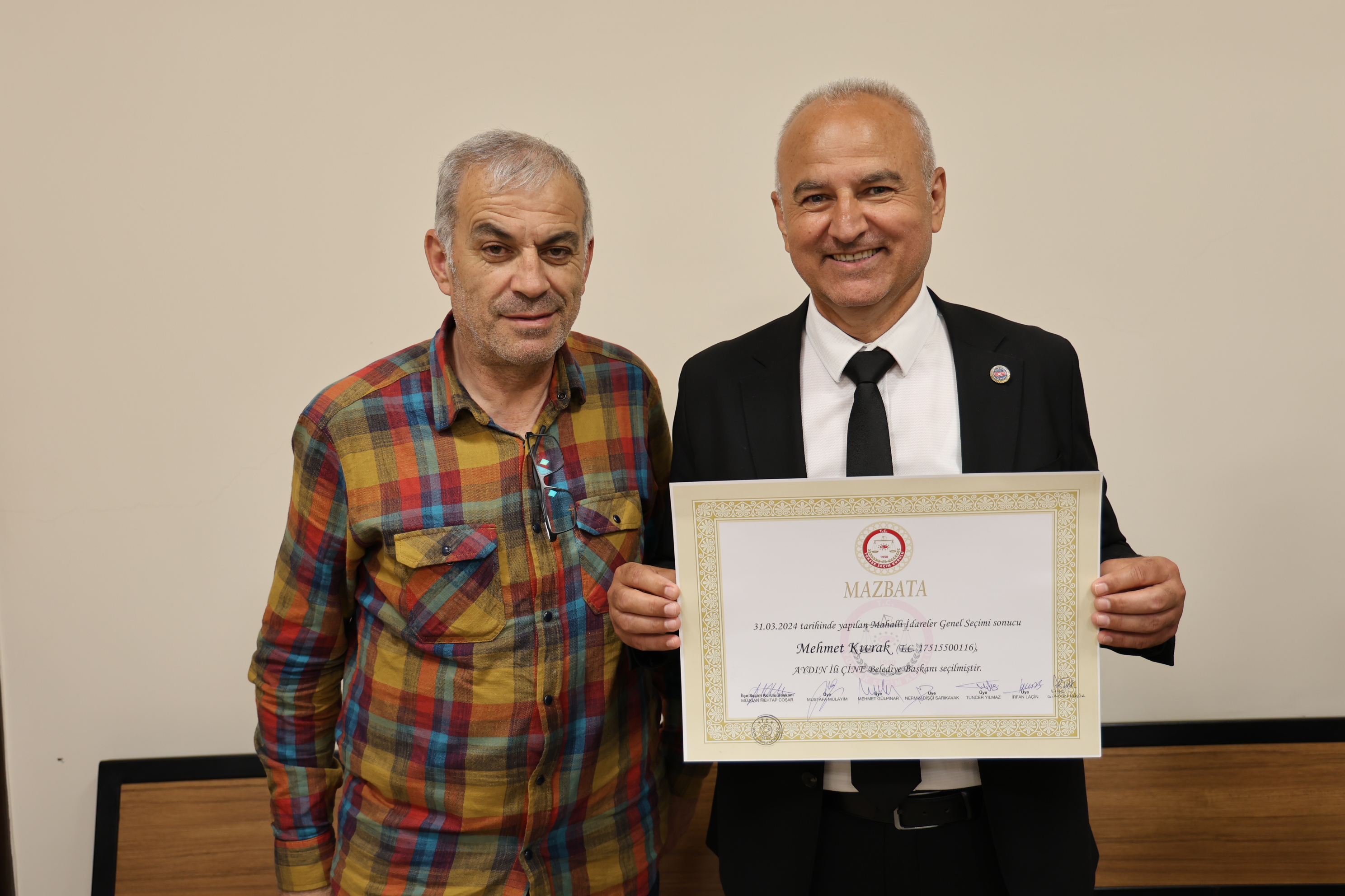 31 Mart Yerel Seçimlerinde büyük bir farkla Çine Belediye Başkanı seçilen Mehmet Kıvrak, mazbatasını aldı.