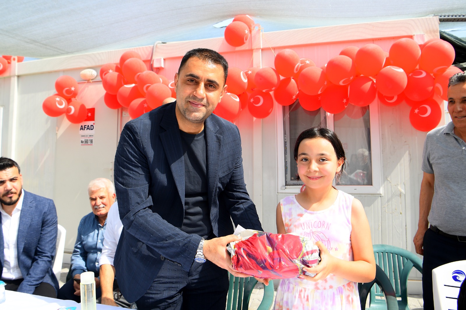 Çukurova Belediye Başkanı Emrah Kozay, Şambayadı Konteyner Kent’te yaşayan depremzede çocukların bayram heyecanına ve coşkusuna armağanlarla ortak oldu.
