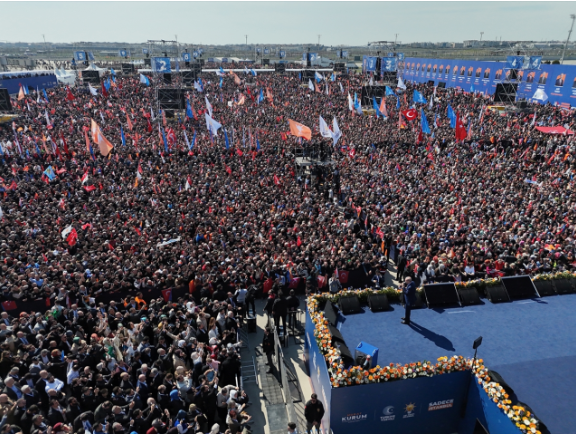 AK Parti'nin Büyük İstanbul Mitingi'nde konuşan Cumhurbaşkanı Erdoğan, "Şu anda karşımda 650 bin kişi var. Biz 1,5 milyona alıştık ama durmuyoruz. İstanbul'un 5 yıllık fetret devrine son vereceğiz'' ifadelerini kullandı.Cumhurbaşkanı Erdoğan 31 Mart seçimleri öncesi mitinglere hız verirken, bugün Atatürk Havalimanı'nda düzenlenen Büyük İstanbul Mitingi'ne katıldı. Mitingde İBB'yi eleştiren Erdoğan, metroların çoğunun bitirilmediğini belirtti.Büyük bir katılımın gerçekleştiği alandaki kişi sayısını da açıklayan Cumhurbaşkanı Erdoğan, "Şu anda karşımda 650 bin kişi var. Biz 1,5 milyona alıştık ama durmuyoruz. İstanbul'un 5 yıllık fetret devrine son vereceğiz" ifadelerini kullandı.Büyük İstanbul Mitingi'nde konuşan Erdoğan: Biz 1,5 milyona alıştık, bugün karşımda 650 bin kişi varErdoğan sözlerini şöyle sürdürdü; "Şu anda diğer genel başkanlar evlerinde ofislerinde yatarken ben 25 vilayete gittim. Çalışacağız, koşacağız. İstanbul olunca konu bu yatırım listesi o kadar uzun ki tek tek anlatmaya kalksak günler yetmez. Geçtiğimiz 21 yılda İstanbul'a 1 trilyon 650 milyar tutarında kamu yatırımı yaptık. Böyle bir yatırımı kimse yapmadı, ama biz yaptık. Bizden sonra bay Ekrem göreve geldi, ortalık rezalet. Yine çöp, yine çamur, yine çukur.Büyük İstanbul Mitingi'nde konuşan Erdoğan: Biz 1,5 milyona alıştık, bugün karşımda 650 bin kişi varÖnümüzdeki dönemde İstanbul'daki önceliğin deprem olduğunu görüyoruz. Hükümet olarak zaten bunu yapıyoruz. Murat Kardeşimizin göreve gelmesiyle inşallah işin eksik ayağı tamamlanacaktır.Büyük İstanbul Mitingi'nde konuşan Erdoğan: Biz 1,5 milyona alıştık, bugün karşımda 650 bin kişi varMetro için yeni bir çivi çakmayanlar inşaat halinde aldıkları metroların çoğunu bitiremediler.Sancaktepe'deki metro projesini bunlar çimento ile doldurdu. Çam Sakura Metrosunu yapmadılar, onu da bakanlığımıza verdiğim talimatla biz yapıp açtık."