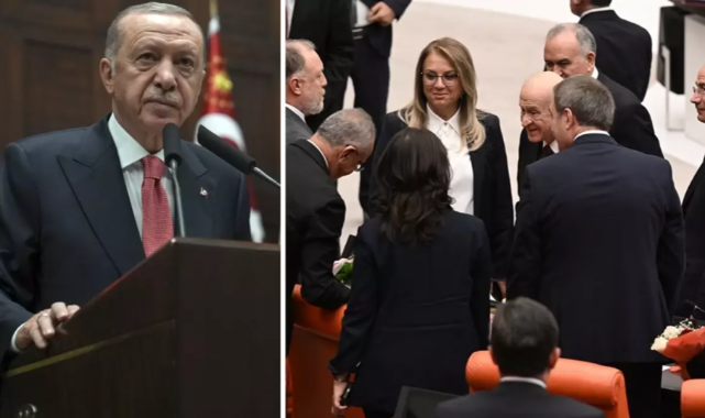 Cumhurbaşkanı Recep Tayyip Erdoğan, Milliyetçi Hareket Partisi (MHP) Genel Başkanı Devlet Bahçeli'nin Halkların Eşitlik ve Demokrasi Partisi (DEM) milletvekilleriyle tokalaşmasının ardından gündeme dair önemli değerlendirmelerde bulundu. Erdoğan, TBMM’deki parti grup toplantısında yaptığı konuşmada, Kobani olaylarına ilişkin samimi bir muhasebe yapılmasının gerekliliğini vurguladı.Cumhurbaşkanı Erdoğan, konuşmasında Kobani olaylarının hukuki açıdan hesabının sorulduğunu belirtti. "Kobani olaylarına dair samimi bir muhasebe yapılmasını önemsiyoruz," diyen Erdoğan, bu durumun yumuşama iklimine katkı sunacağını ifade etti.Ayrıca, 6-8 Ekim olaylarının yıl dönümüne değinerek, bu olaylarda hayatını kaybeden Yasin Börü ve arkadaşlarının unutturulamayacağını vurguladı. Erdoğan, "Demokratik siyasette asla şiddete ve teröre yer yoktur," diyerek, şiddetle arasına mesafe koyan anlayışların desteklenmesi gerektiğinin altını çizdi.Cumhurbaşkanı Erdoğan, yeni yasama yılında siyasette farklı bir üslup ve söylem görmek istediklerini dile getirdi. "Bölgemizin içinde bulunduğu atmosferi düşünerek daha fazla konuşmaya, uzlaşıya ve diyalog zeminini genişletmeye ihtiyaç var," ifadelerini kullanan Erdoğan, milletin faydasına olan her konuda diyalogdan kaçınmayacaklarını belirtti. Bu bağlamda, Türkiye'nin geleceği için kapsayıcı bir yaklaşım benimsemenin önemine vurgu yaptı.Devlet Bahçeli'nin "Uzattığım el, 'Türkiye partisi olun' teklifidir, milli birlik ve kardeşliğimizin mesajıdır," şeklindeki açıklamalarını olumlu değerlendiren Erdoğan, Bahçeli’nin bu sözlerinin 85 milyonun kardeşliği adına son derece anlamlı olduğunu ifade etti.Erdoğan, "Bölgemizin içinde bulunduğu atmosferi düşünerek daha fazla konuşmaya, uzlaşıya ve diyalog zeminini genişletmeye ihtiyacımız var," diyerek, tüm siyasi partilerin bu doğrultuda hareket etmesini beklediklerini dile getirdi.Cumhurbaşkanı Erdoğan'ın bu açıklamaları, Türkiye'nin siyasi gündemindeki önemli başlıkları yeniden şekillendirebilirken, Kobani olaylarının üzerine gidilmesi gerektiğini de hatırlattı. Bu tür bir samimi muhasebe, ülkede barış ve uzlaşı ortamının tesis edilmesine katkı sağlayabilir.