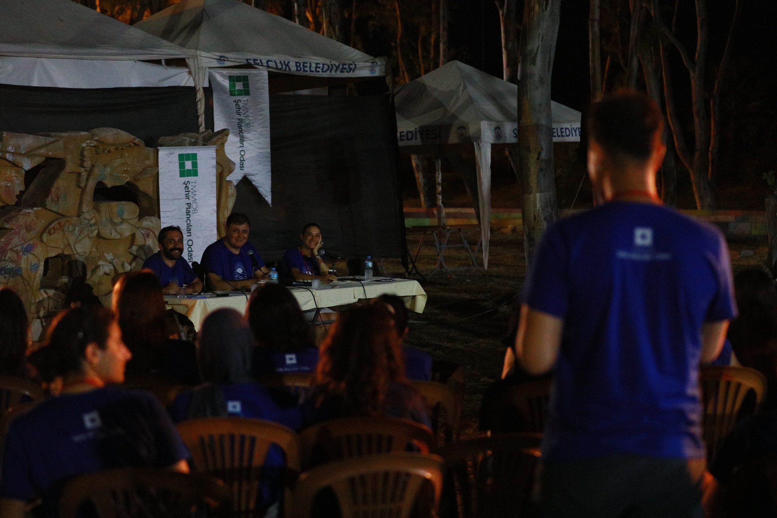 TMMOB Şehir Plancıları Odası 12. Planlama Öğrencileri Yaz Eğitim Kampı kapsamında İzmir Büyükşehir Belediye Başkanı Cemil Tugay ve Efes Selçuk Belediye Başkanı Filiz Ceritoğlu Sengel ile bir araya geldi. Yerel yönetimler ve planlama ilişkisinin birçok yönden ele alındığı söyleşide Filiz Başkan ve Cemil Başkan öğrencilerin sorularını cevapladı. TMMOB Şehir Plancıları Odası Genel Sekreteri Ayhan Erdoğan yerel yönetimlerin çalışma alanlarının şehir planlaması ile sıkı bir ilişki içerisinde olduğunu belirterek; “Planlamada teorik çerçevenin uygulamadaki karşılığının en temel alanlarından biri yerel yönetimlerdir.İnsan hakları ve yerel demokrasi, halkçı yerel yönetimler, toplumsal cinsiyet eşitliği, göç ve mekan, sosyal ve kentsel adalet, kent aklı, kentsel tasarım, kentsel gıda sunumu, dirençli kentler gibi başlıklara baktığımızda bunların aynı zamanda yerel yönetimlerin de doğrudan konu başlıkları ve çalışma alanları olduğunu görüyoruz” dedi. SİZİNLE ADIM ATMAYA DEVAM EDECEĞİZ