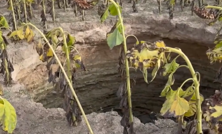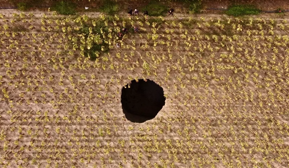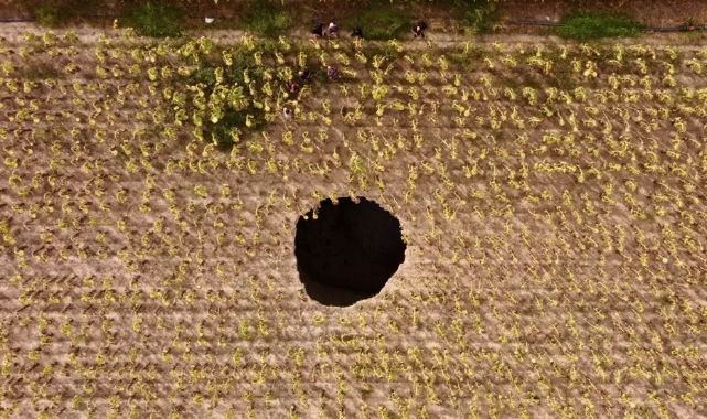 Eskişehir’in Çifteler ilçesindeki bir ayçiçeği tarlasında yaklaşık 20 metre derinliğinde, 5 metre çapında büyük bir obruk meydana geldi.