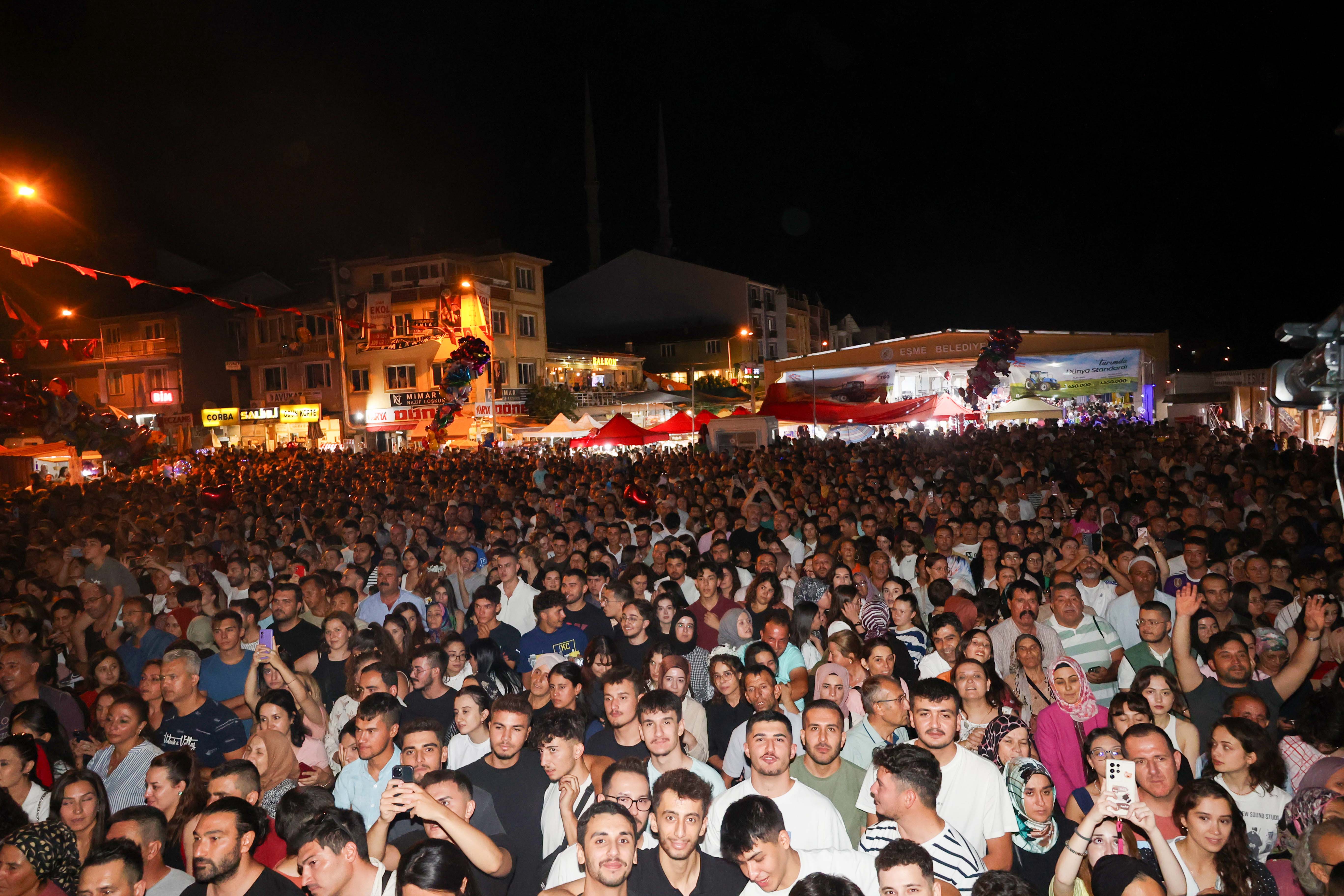 Akşam saatlerinde ise müzik, festival alanını sarmaya başladı. Radyoların sevilen sesi Duygu Atakan’ın enerjik performansı ile başlayan konser programı, Haluk Levent'in sahneye çıkmasıyla doruğa ulaştı.Levent, “Sevenler Ağlarmış,” “Elfida” ve “Aşkın Mapushane” gibi sevilen şarkılarını festivalseverlerle hep bir ağızdan söyledi. Sahneye inerek izleyicilerle birlikte şarkı söyleyen Levent, enerjisiyle festival alanını adeta coşturdu.Gecenin sonunda, Eşme Belediye Başkanı Yılmaz Tozan, Haluk Levent’e festivaldeki performansı için teşekkür etti ve programa katılan belediye başkanlarına günün anısına Eşme kilimi hediye etti. Bu coşkulu ve renkli gün, festivale katılan herkes için unutulmaz anılarla sona erdi.