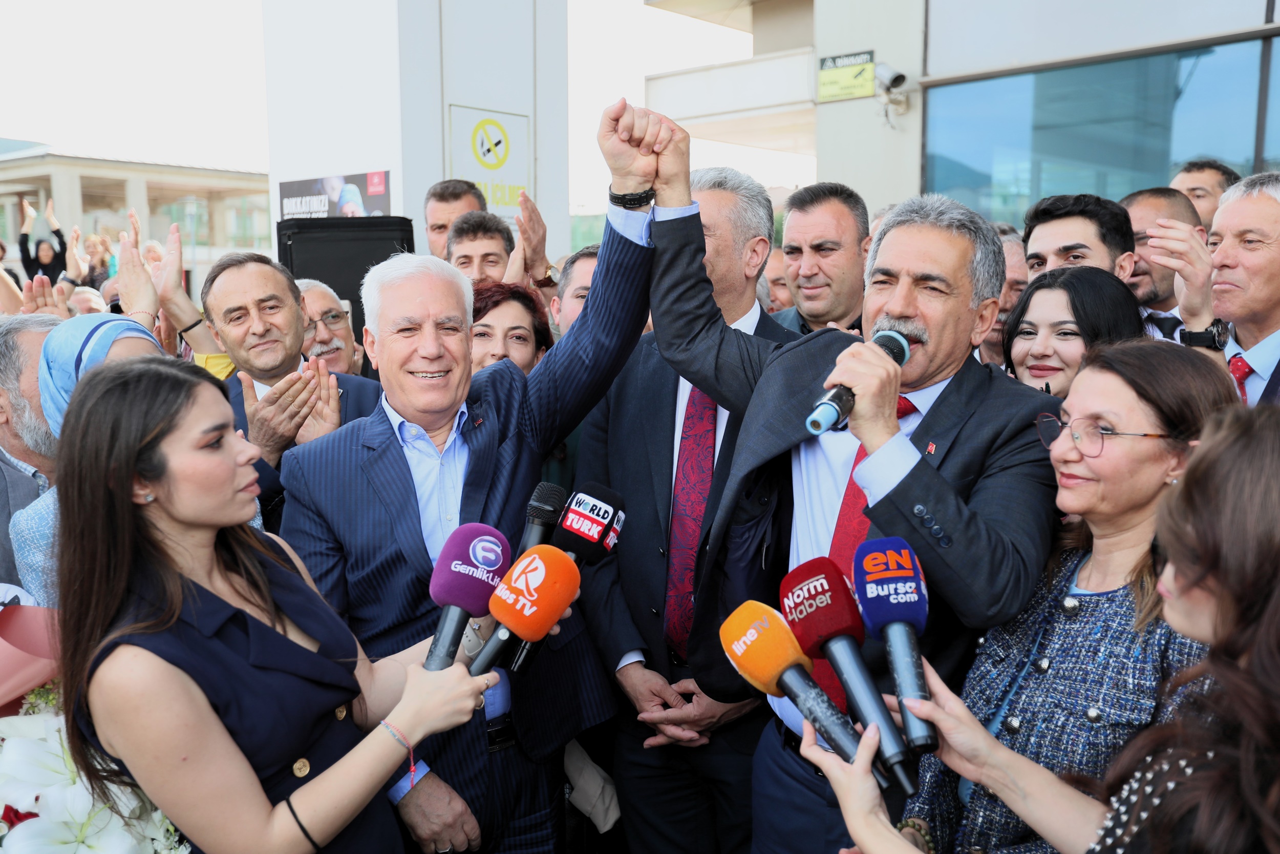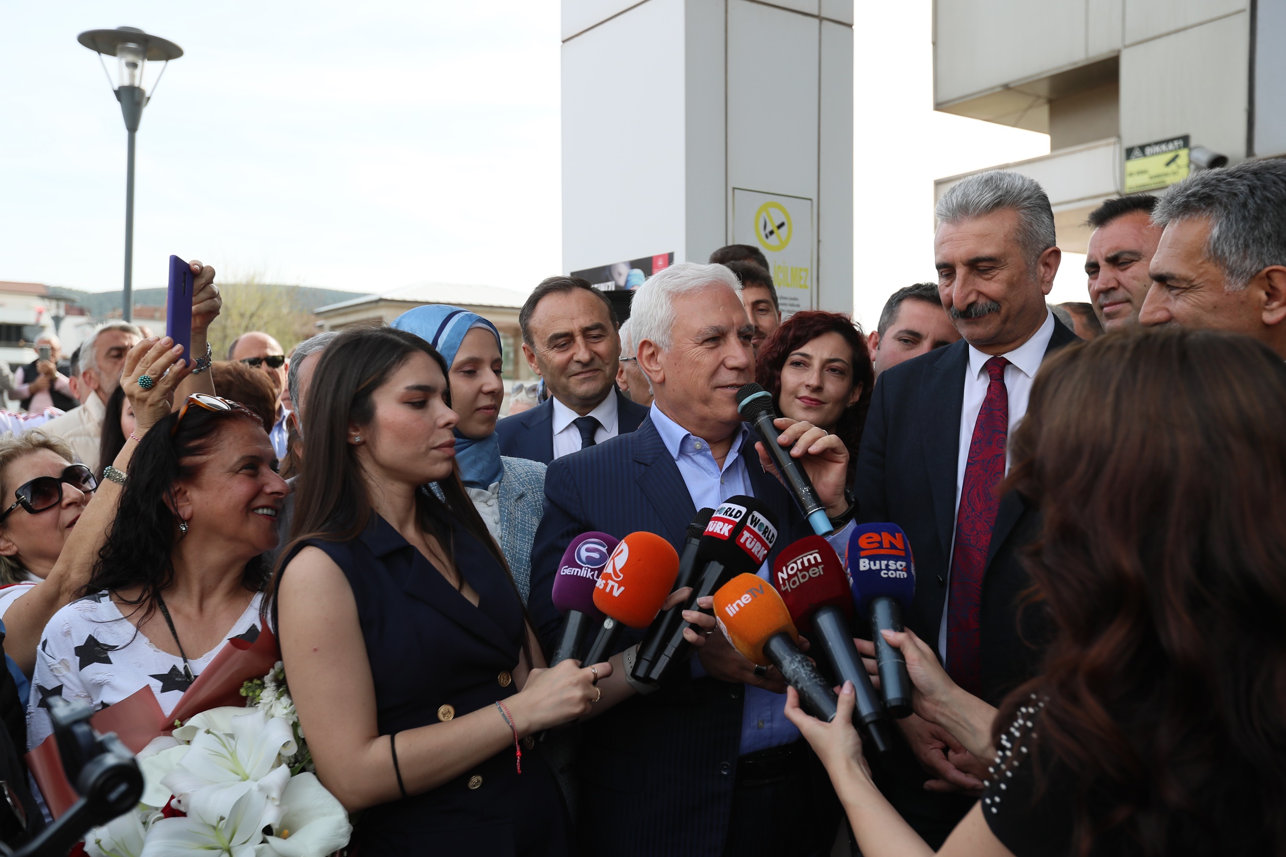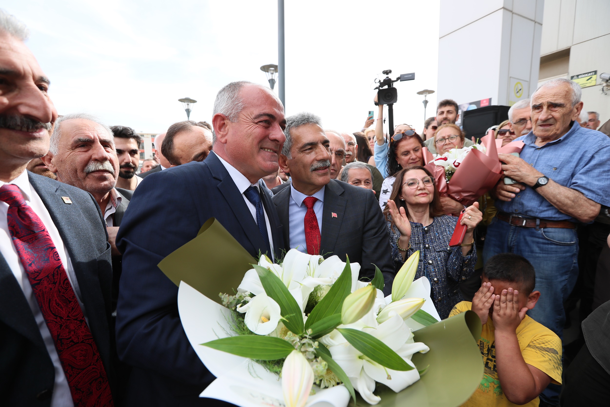 Yerel seçimde yüzde 51,33 oy oranıyla Gemlik’in yeni belediye başkanı seçilen Şükrü Deviren, Gemlik Belediyesi önünde kalabalık destekçi grubuyla görevi devraldı.
