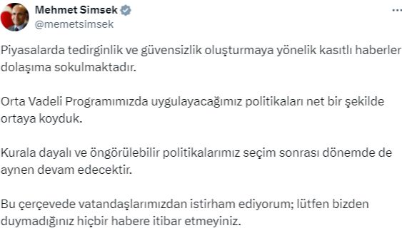 Kredi kartlarına taksit uygulamasının kaldırıldığına yönelik iddia kamuoyunda geniş yankı uyandırdı. İddiaları yalanlayan Hazine ve Maliye Bakanı Mehmet Şimşek, "Piyasalarda tedirginlik ve güvensizlik oluşturmaya yönelik kasıtlı haberler dolaşıma sokulmaktadır