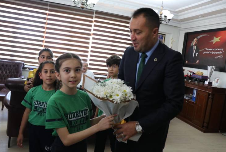 Belediye Başkanımız Sayın Kasım KARAKÖSE Öğrencilerimiz ile ilçemiz için geridönüşüm fikirlerini başkanımız ile paylaştılar.