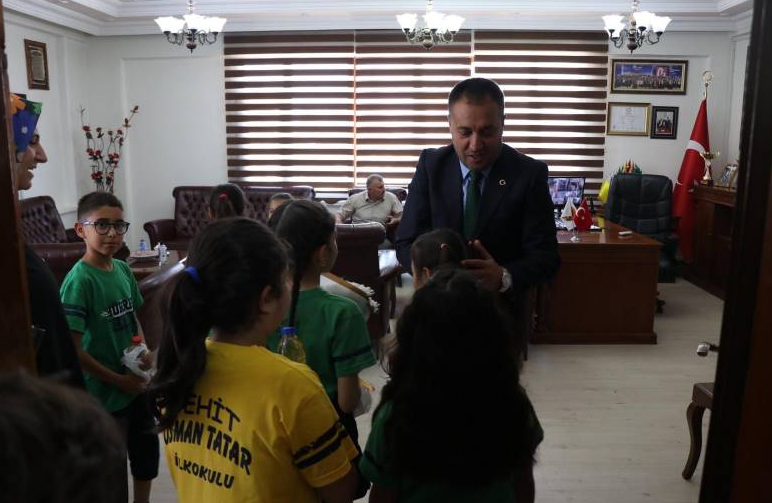 Belediye Başkanımız Sayın Kasım KARAKÖSE Öğrencilerimiz ile ilçemiz için geridönüşüm fikirlerini başkanımız ile paylaştılar.Belediye Başkanımız Sayın Kasım KARAKÖSEZero Waste İn My Kitchen 'Sıfır Atık Mutfağımda' eTwinning projesinde yer alan Hürriyet İlkokulu ve Şehit Osman Tatar İlkokulu öğrencilerini makamında misafir etti. Öğrenciler ilçemiz için geridönüşüm fikirlerini başkanımız ile paylaştılar.