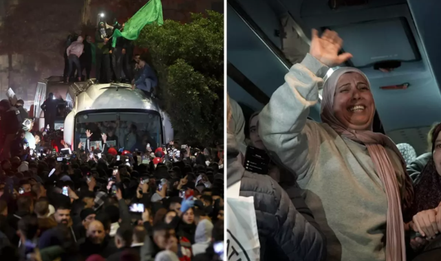 İsrail ve Hamas arasında varılan ateşkes ve esir takası anlaşması kapsamında, taraflar ilk adımları attı. Hamas, İsrail'in talepleri doğrultusunda 3 İsrailli esiri serbest bırakırken, İsrail de karşılık olarak 90 Filistinli tutuklunun tahliye edildiğini duyurdu. Filistinlilerin cezaevinden ayrıldığı anlar kameralar tarafından kaydedilirken, Batı Şeria'da büyük bir kalabalık serbest bırakılan mahkumları coşkuyla karşıladı.İsrail’den Beklenen Adım GeldiHamas, ateşkes ve esir takası anlaşmasının bir parçası olarak Romi Gonen, Emily Damari ve Doron Steinbrecher adlı 3 İsrailli esiri serbest bıraktı. İsrail ordusu, bu kişilerin güvenli bir şekilde İsrail topraklarına ulaştığını doğruladı. Hamas'ın adımının ardından gözler İsrail'e çevrildi ve İsrail hükümeti, anlaşma kapsamında 90 Filistinli mahkumu serbest bıraktığını duyurdu.Serbest Bırakılan Filistinliler Kimler?İsrail Hapishane Hizmetleri Servisi'nden (IPS) yapılan açıklamada, serbest bırakılan 90 Filistinlinin çoğunun kadın ve çocuklardan oluştuğu belirtildi. Filistin basınına göre tahliye edilen tutukluların 69'u kadın, 20’si çocuk ve biri genç yaşta bir erkekti. 90 kişiden 78’i Batı Şeria’dan, 12’si ise işgal altındaki Doğu Kudüs’ten geldi.Filistinli mahkumlar, Batı Şeria’daki Beitunia beldesine ulaşırken, Uluslararası Kızılhaç Komitesi’ne ait otobüslerle bölgeye taşındılar. Serbest bırakılan kişiler, Beitunia'da toplanan yüzlerce kişi tarafından sevinç gösterileriyle karşılandı.Cezaevinden Çıkış Anları Kameralara YansıdıSerbest bırakılan Filistinlilerin hapishaneden ayrıldığı anlar amatör kameralar tarafından kaydedildi. Görüntülerde mahkumların özgürlüğüne kavuştuğu anlarda sevinç gözyaşları döktüğü, aileleri ve sevdikleriyle kucaklaştığı anlar dikkat çekti. Batı Şeria'da mahkumları karşılayan kalabalık, İsrail hapishanelerinde hala tutulan binlerce Filistinlinin serbest bırakılmasını talep eden sloganlar attı.Ateşkes Süreci ve Gelecekteki Adımlarİsrail ile Hamas arasındaki ateşkes, 7 Ekim 2023'te başlayan çatışmaların ardından yoğun müzakereler sonucunda sağlandı. Anlaşma kapsamında, İsrail ve Hamas’ın belirli aşamalarla esir takası yapması bekleniyor. Hamas'ın elinde hala çok sayıda İsrailli esirin bulunduğu, İsrail'in de yüzlerce Filistinliyi hapishanelerde tutmaya devam ettiği biliniyor.Analistler, ateşkesin kalıcı olup olmayacağı konusunda belirsizliklerin devam ettiğini belirtiyor. İsrail ve Hamas arasında yürütülen müzakerelerin sonucuna göre önümüzdeki günlerde daha fazla esir değişimi gerçekleşebileceği öngörülüyor.