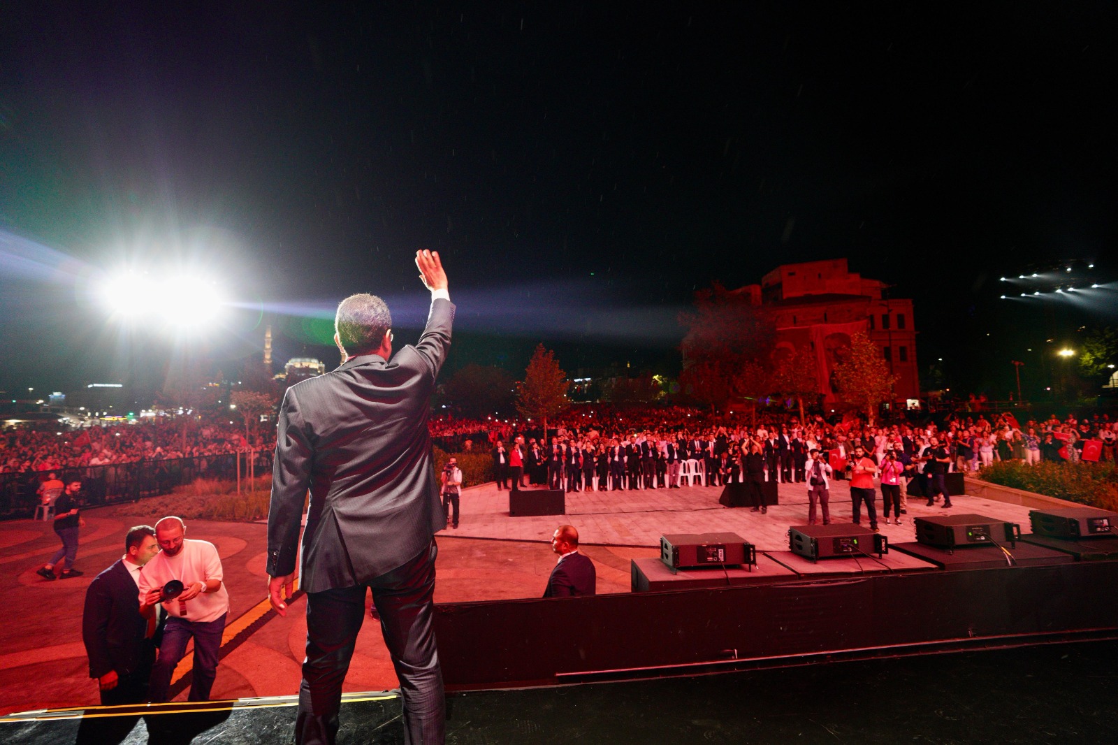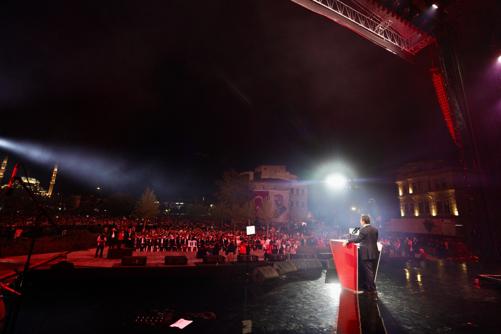 İstanbul, 30 Ağustos Zafer Bayramı'nın 102. yıl dönümünü, İBB tarafından şehre kazandırılan yeni Eminönü Meydanı'nda görkemli bir etkinlikle kutladı.Binlerce İstanbullu, Haliç ve Boğaz manzarası eşliğinde yapılan kutlamalara katıldı.Etkinlikte konuşan Türkiye Belediyeler Birliği (TBB) ve İstanbul Büyükşehir Belediye (İBB) Başkanı Ekrem İmamoğlu, "Milletimizin azim ve kararının önünde hiçbir güç duramaz, duramadı, duramayacak" diyerek, 86 milyon yurttaşa güven ve umut mesajı verdi.Etkinlik, CHP Genel Başkan Yardımcısı Sevgi Kılıç, CHP Parti Meclisi üyeleri Mahir Yüksel, Cem Aydın, CHP İstanbul İl Başkanı Özgür Çelik, ve Türkiye Futbol Federasyonu Başkanı İbrahim Hacıosmanoğlu gibi önemli isimlerin de katılımıyla zenginleşti.İmamoğlu, "30 Ağustos bağımsızlığa, Cumhuriyetimize ve cumhuriyet değerlerine kararlılıkla sahip çıkma günüdür," diyerek İstanbullulara hitap etti.Konuşmasının ardından, senfoni orkestrasıyla birlikte sahne alan Cem Adrian ve diğer konuk sanatçılar, İstanbullulara unutulmaz bir müzik ziyafeti sundu.Etkinlik, Boğaz üzerinde gerçekleştirilen su ve ışık şovlarıyla son buldu.