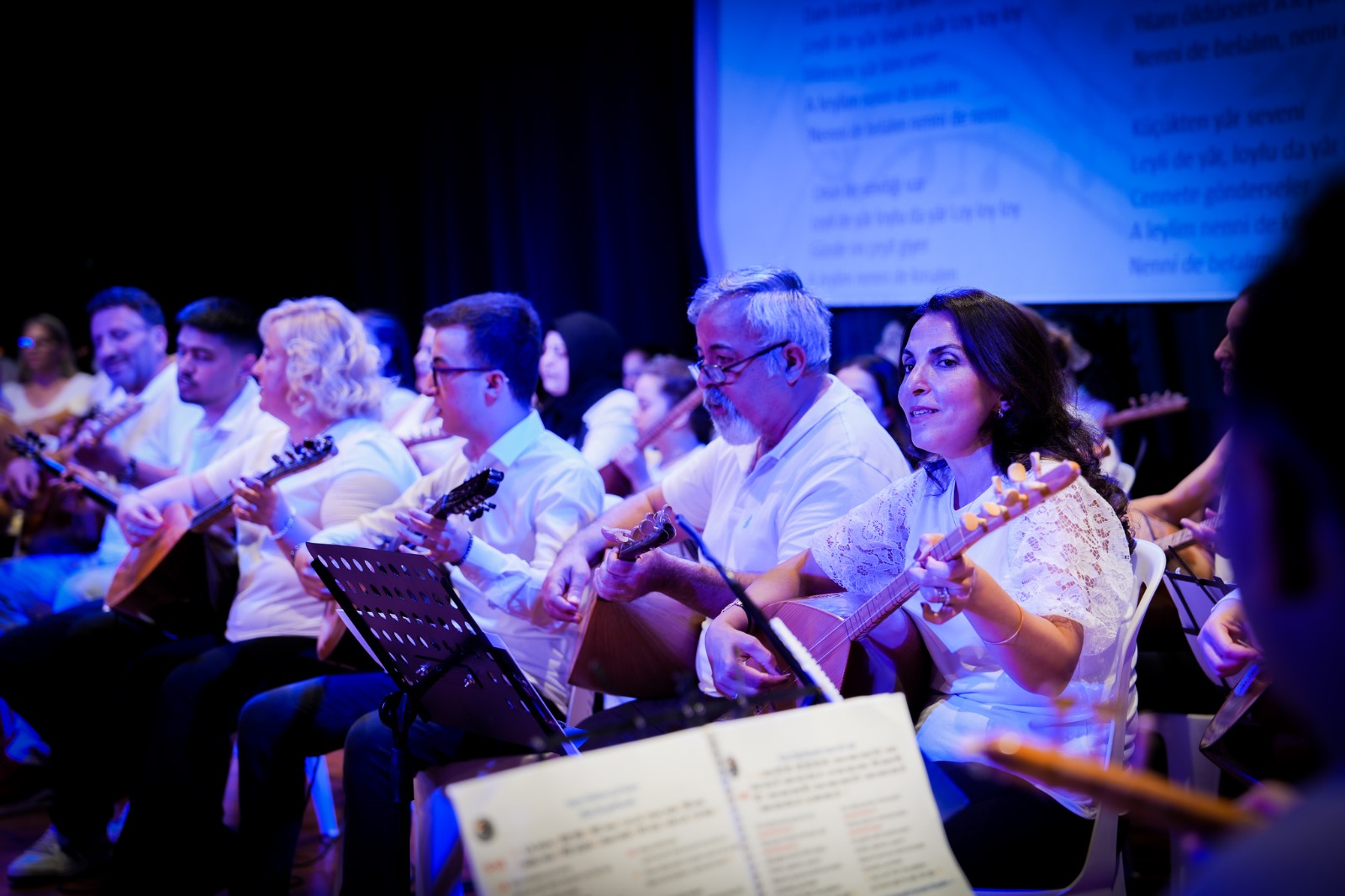 Kartal Belediyesi Kültür ve Sosyal İşler Müdürlüğü bünyesinde eğitim alan bağlama kursu öğrencileri, hazırladıkları yılsonu mezuniyet konseri ile kartal Belediyesi Uğur Mumcu Kültür Merkezi’nde etkinliğe katılanları kendilerine hayran bıraktı.Çeşitli yaş gruplarından eğitimlerini tamamlayarak sertifikalarını alan yaklaşık 60 yetenekli öğrencinin, farklı duyguları bir arada yaşattığı konserde, aileler ve sanatsever Kartallılar da beğenilerini eserlere hep bir ağızdan eşlik ederek gösterdi. Eğitmen ve sanatçı Taner Özsoy’un şefliğinde gerçekleştirilen konserde, halk ozanlarının unutulmaz eserleri çalınıp söylendi. Bağlama performansları ile ve seslendirdikleri türkülerle büyük beğeni toplayan öğrenciler, konseri dinlemeye gelenlere adeta müzik şöleni sundu. Temponun hiç düşmediği konserde dinleyiciler de türkülere sık sık eşlik etti ve alkışları ile öğrencilere destek oldu. Kartal’ımızı sanatın ve kültürün merkezi yapmak için çalışıyoruz