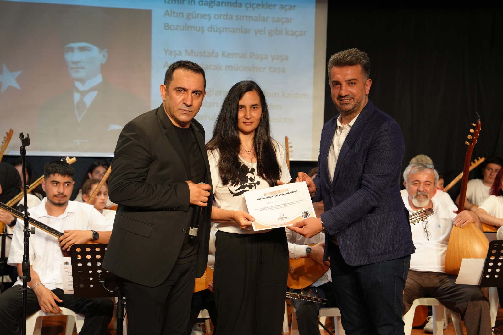 Kartal Belediye Başkanı Gökhan Yüksel’e desteklerinden dolayı teşekkürlerini ileten Sanatçı Taner Özsoy ise “Bu hizmet sayesinde sanatla iç içe olmak isteyen yüzlerce komşumuza eğitim veriyoruz. Bugün burada bu güzel etkinliği gerçekleştirmemize vesile olan Başkanımız Gökhan Yüksel ve tüm ekibine teşekkürlerimi sunuyorum.” ifadelerini kullandı.Konser sonunda eğitmen ve sanatçı Taner Özsoy’a Kartal Belediye Başkan Yardımcı Adem Uçar, Kültür ve Sosyal İşler Müdürü Deniz Şahin, Uğur Mumcu Mahallesi Muhtarı Soner Eker, Yakacık Çarşı Mahallesi Muhtarı Senem Özdemir ve Uğur Mumcu Kültür Merkezi Koordinatörü Çağdaş Murat Sabancı tarafından çiçek buketi takdimi yapıldı. Buket takdiminin ardından bağlama eğitimlerini başarı ile tamamlayıp muhteşem bir de konserle taçlandıran kursiyerlere, mezuniyet sertifikalarını takdim etmek için Sanatçı Özsoy’a Kültür ve Sosyal İşler Müdürü Deniz Şahin eşlik etti.