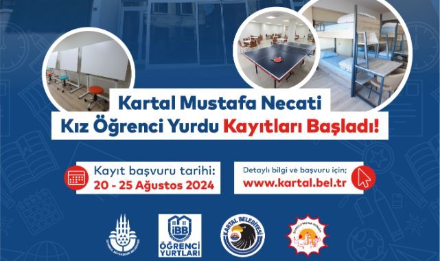 Kartal Belediyesi tarafından Türkiye Cumhuriyeti’nin 100. yılında üniversiteli kız öğrenciler düşünülerek büyük bir törenle hizmete açılan Mustafa Necati Yükseköğrenim Kız Öğrenci Yurdu için başvuru kayıtları alınmaya başlandı.Kartal Belediye Başkanı Gökhan Yüksel’in eğitime verdiği destek doğrultusunda, Cumhuriyetin 100. Yılında, Cumhuriyet kızlarına ithaf edilerek açılan ve üniversite eğitimini görmekte olan kız öğrenciler düşünülerek tam donanımlı bir şekilde hizmete sunulan Mustafa Necati Yükseköğrenim Kız Öğrenci Yurdu’nun, başvuruları 20-25 Ağustos 2024 tarihleri arasında gerçekleşecek.Kartal Belediyesi Mustafa Necati Yükseköğrenim Kız Öğrenci Yurdu için başvurular, https://bit.ly/KizOgrenciYurduOnKayit linki üzerinden yapılacak.Başvuru Şartları