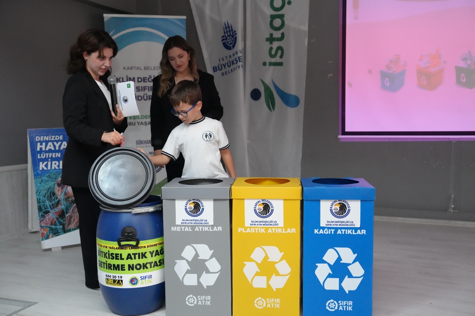 Kartal Belediyesi İklim Değişikliği ve Sıfır Atık Müdürlüğü, Uğur Mumcu Mahallesi’ndeki İhsan Bayrakçı İlkokulu öğrencilerine “Atığı Azalt, Doğayı Kazan” adlı sıfır atık eğitimi düzenledi.