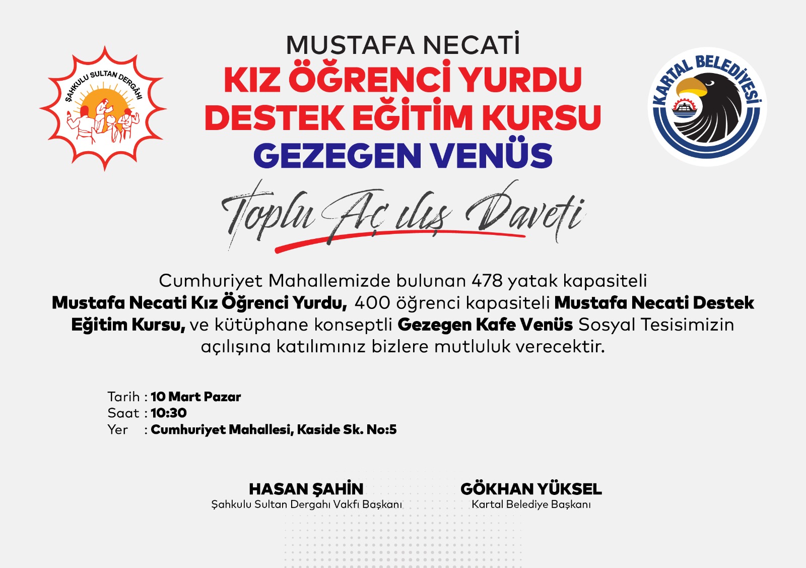 Mustafa Necati Destek Eğitim Kursu, Kız Öğrenci Yurdu ve Venüs Gezegen Kafe’nin Açılışı 10 Mart’ta!
