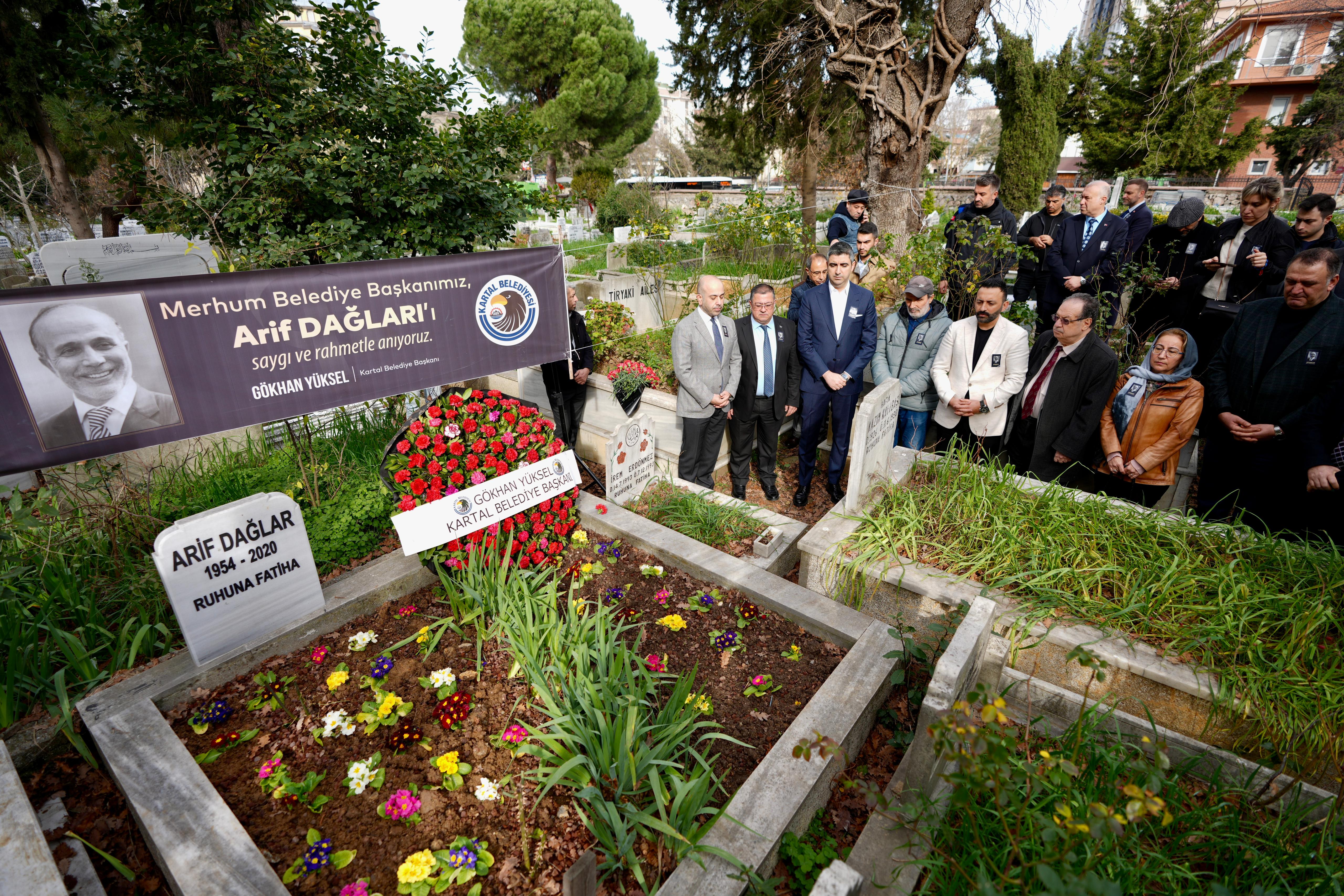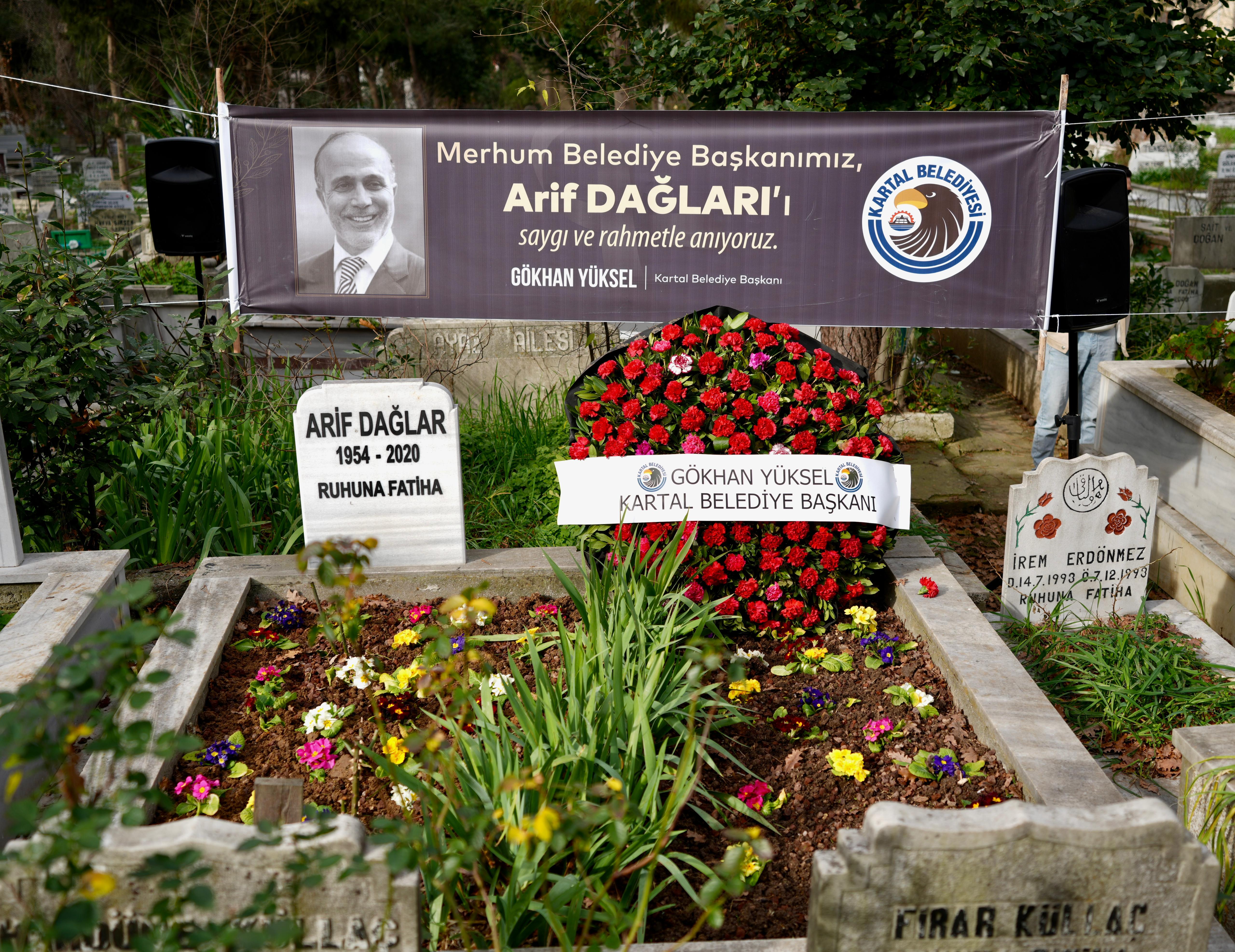 Kartal'da 2004-2009 yıllarında belediye başkanlığı görevinde bulunan ve dört yıl önce tedavi gördüğü hastanede hayatını kaybeden Arif Dağlar için Kartal Belediyesi, merhumun Soğanlık Mezarlığı'nda bulunan kabri başında bir anma töreni düzenledi.Törende Kur’an-ı Kerim okundu, dualar edildi, Kartal Belediye Başkanı Gökhan Yüksel ve sevenleri merhumun kabrine karanfil bıraktı.Anma töreni sırasında bir konuşma gerçekleştiren Kartal Belediye Başkanı Gökhan Yüksel, “Kıymetli çalışma arkadaşlarım, sevgili Dağlar Ailesi, yakınları, sevgili kardeşi, yeğeni, dostları, siyaseten farklı kulvarlarda olsak da sevgili mevkidaşımın Kartal’a ve Kartal halkına katmış olduğu hizmetlerden dolayı kendisini bugün burada dualarla yad ediyoruz. Aynı zamanda kendisi ile mahalleden komşu olmuş olmanın da ayrı bir duygusunu yaşıyorum. Beş yıllık Kartal’a hizmet döneminde taş üstüne taş koyandan Allah razı olsun düsturu ile sevgili belediye başkanımızı anıyoruz. Belediye başkanlığının ötesinde kendisi gerçek anlamda komşum olması vesilesiyle hep ifade ettiğimiz komşuluk, dostluk, arkadaşlık hukukunun da örneğini yaşıyoruz. Merhum başkanımıza tekrar Allah’tan rahmet, ailesi ve yakınlarına da sabırlar diliyorum, mekânı cennet olsun.” ifadelerini kullandı. Düzenlenen törene Kartal Belediye Başkanı Gökhan Yüksel, merhumun kardeşi Mustafa Dağlar, Deva Partisi Kartal İlçe Başkanı İltan Ekmekçioğlu, Demokrat Parti Kartal İlçe Başkanı Eray Ekim, Atatürkçü Düşünce Derneği Kartal Şube Başkanı Hülya Arkan, kartal belediyesi Başkan Yardımcıları, birim müdürleri ve Dağlar Ailesi’nin yakınları katıldı.Arif Dağlar Hakkında